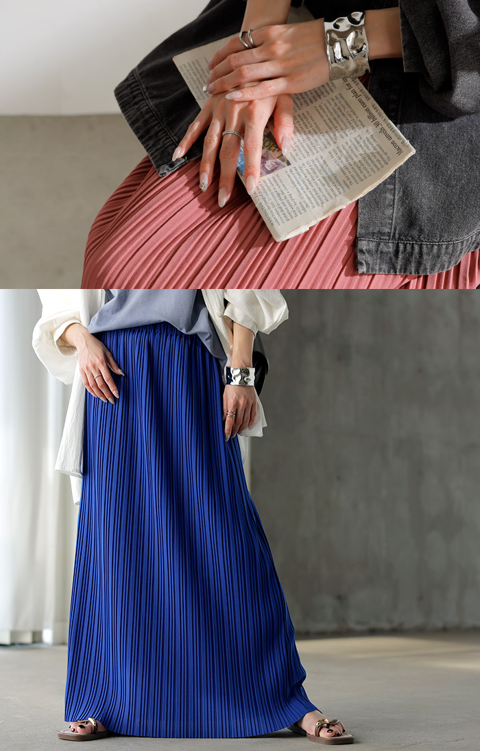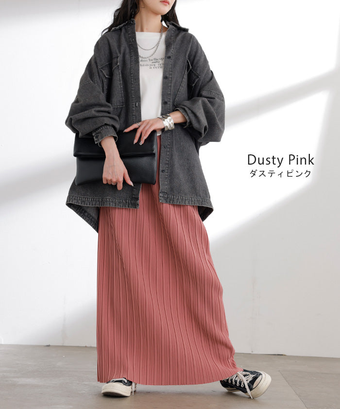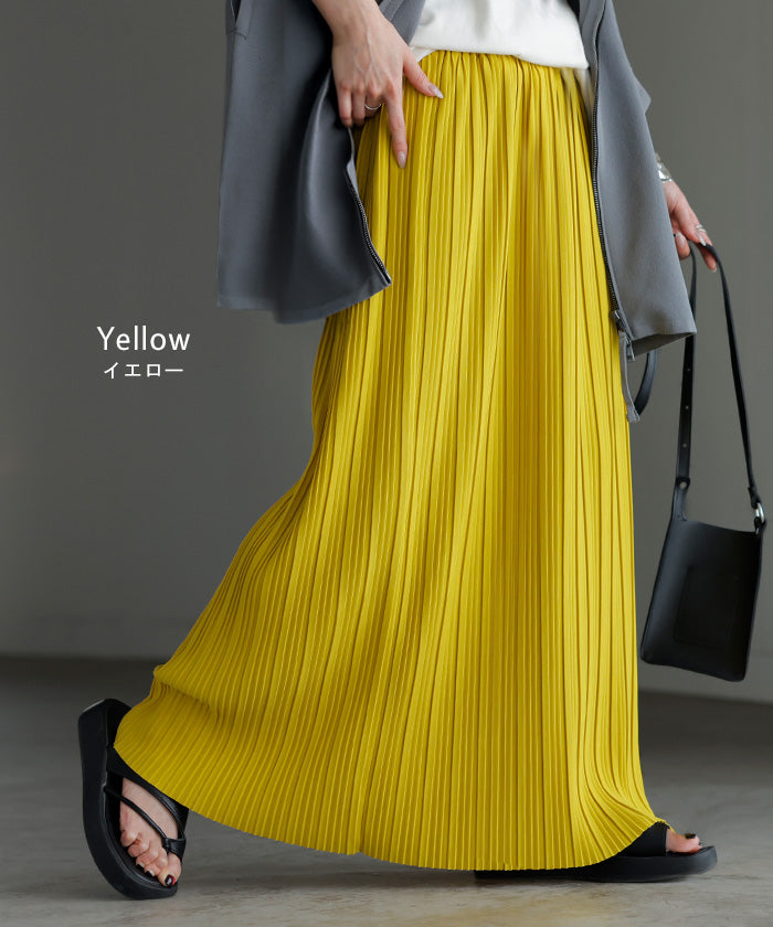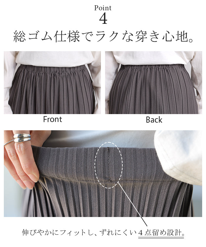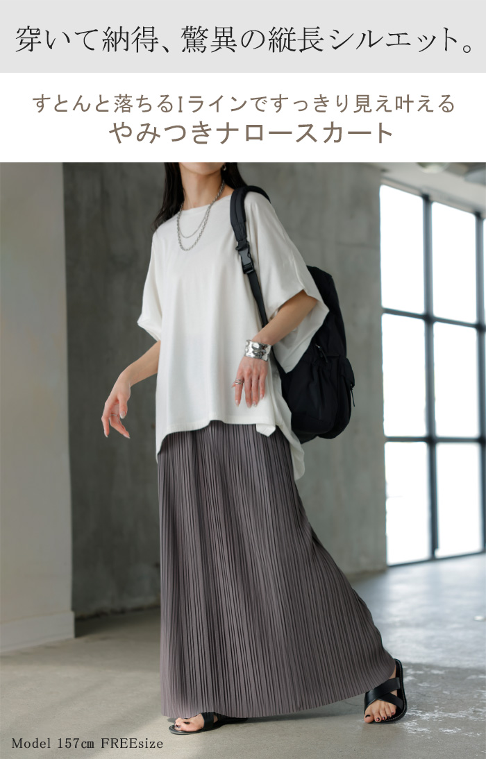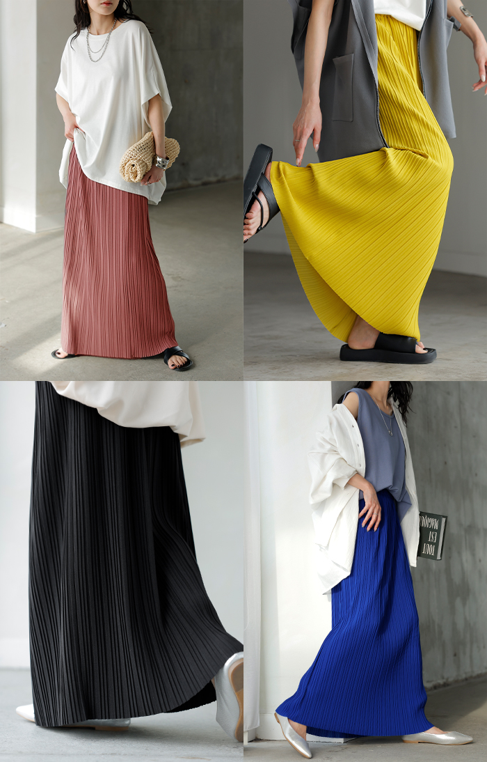 【早割10%OFF】2026SS新作 スカート ロング プリーツ ■3月中旬入荷 レディース タイト ロングスカート タイトスカート ナロースカート ボトムス Iライン 細プリーツ 細い ストレッチ シワになりにくい 無地 長い ゆったり ハイウエスト おしゃれ きれいめ 着痩せ 黒 グレー 秋 冬 HUG.U