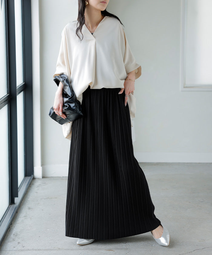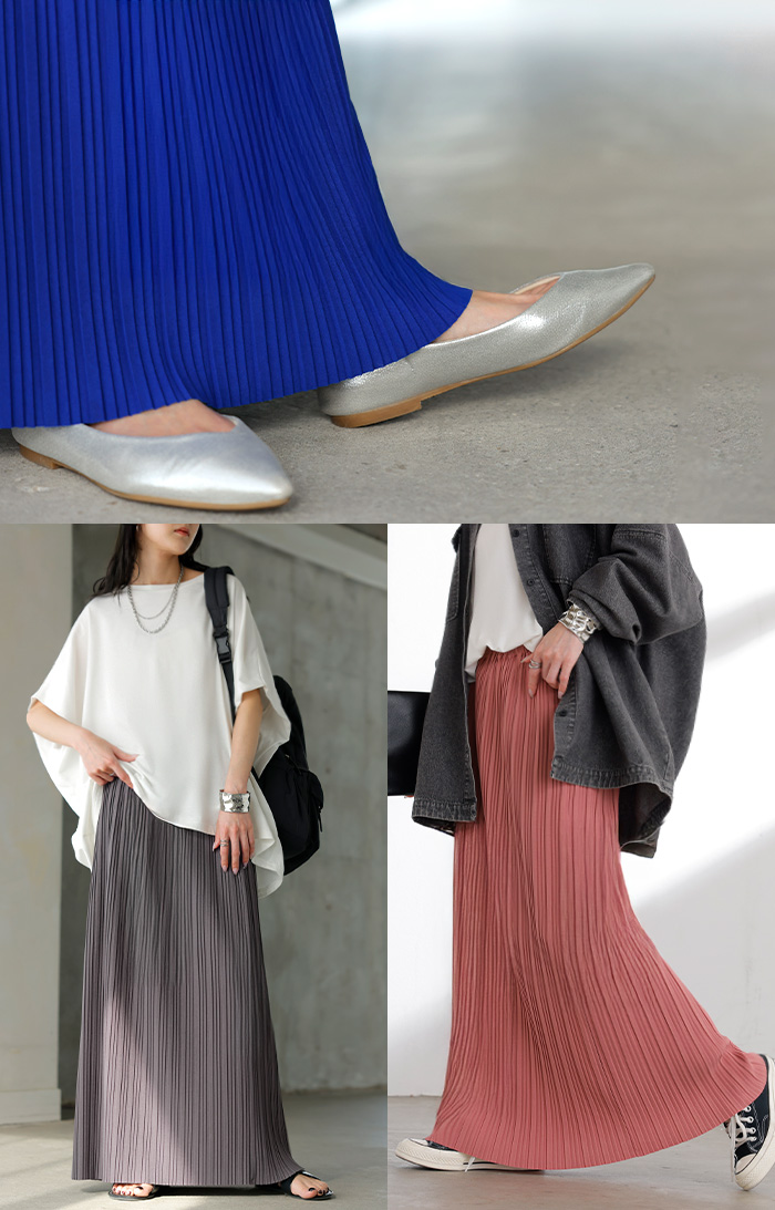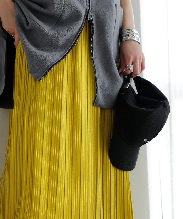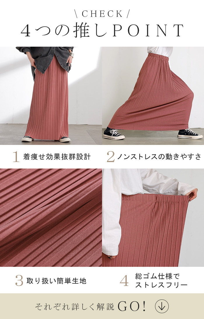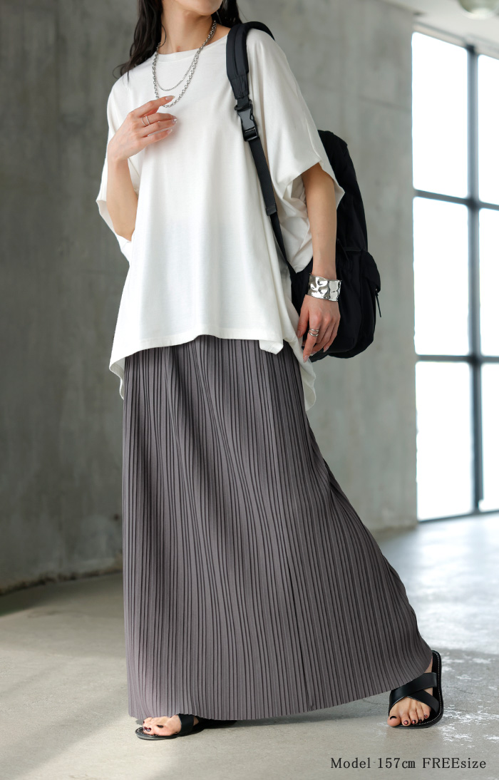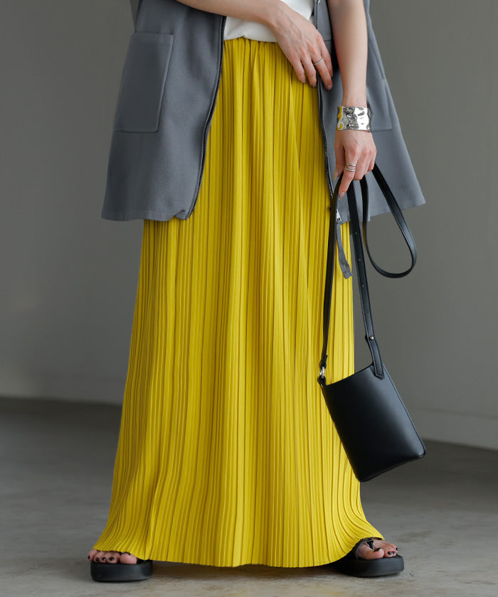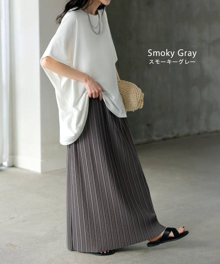 【早割10%OFF】2026SS新作 スカート ロング プリーツ ■3月中旬入荷 レディース タイト ロングスカート タイトスカート ナロースカート ボトムス Iライン 細プリーツ 細い ストレッチ シワになりにくい 無地 長い ゆったり ハイウエスト おしゃれ きれいめ 着痩せ 黒 グレー 秋 冬 HUG.U