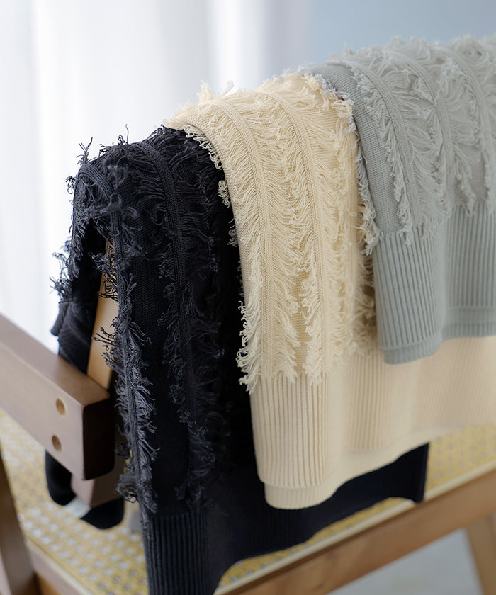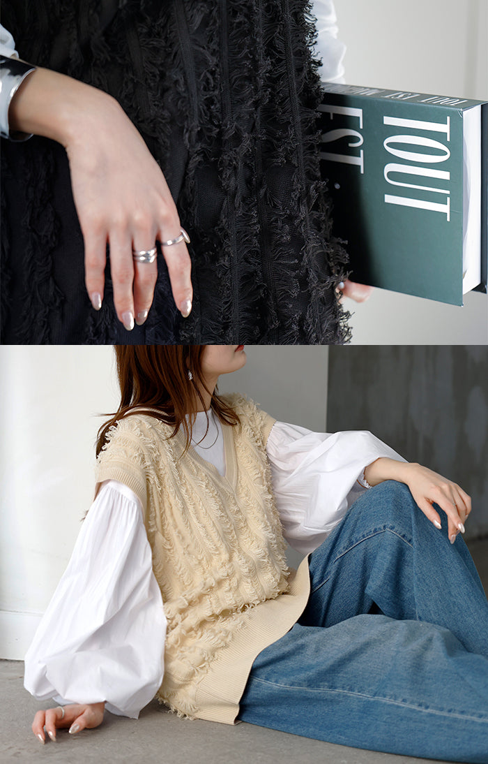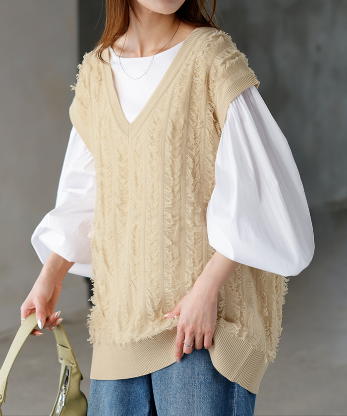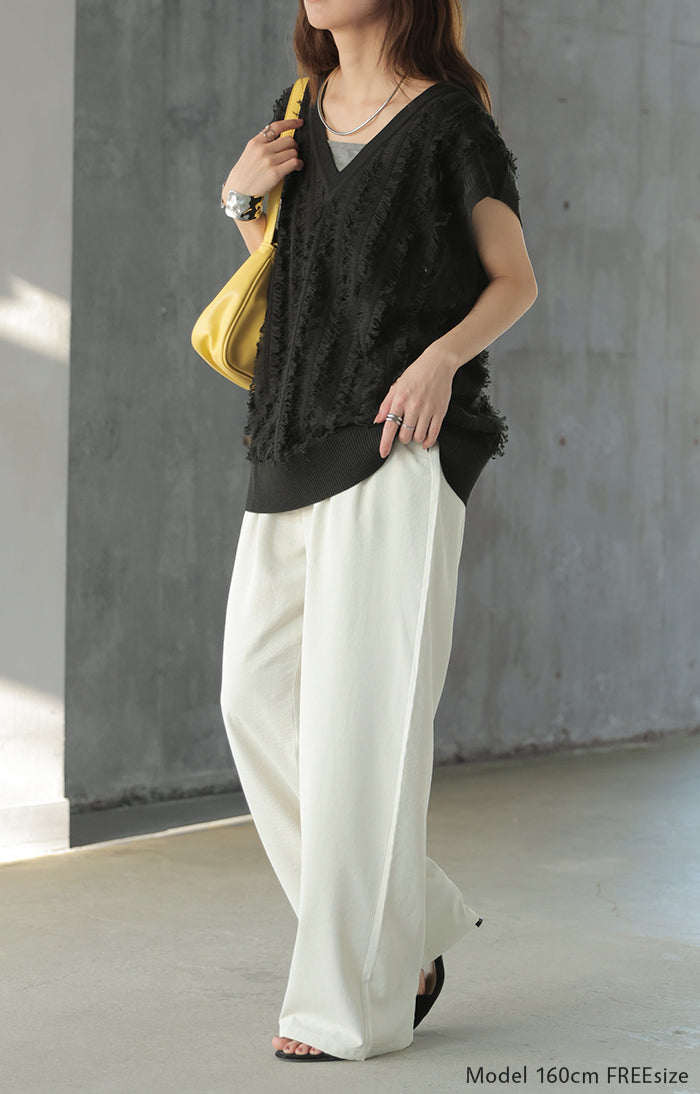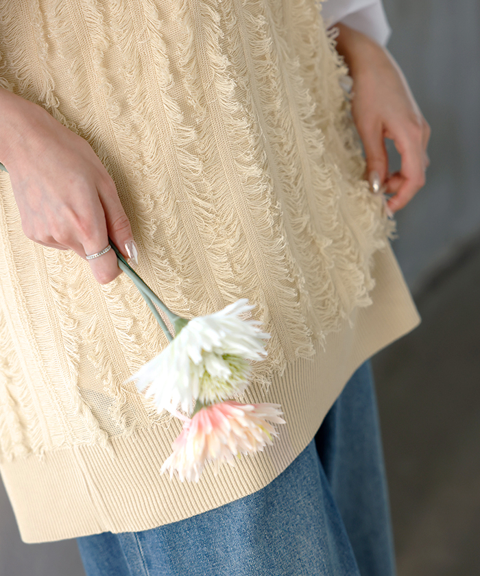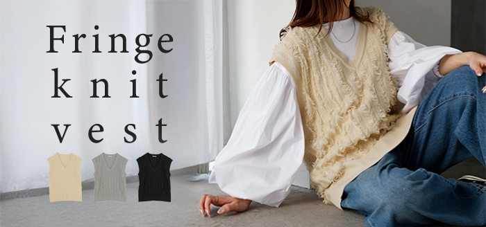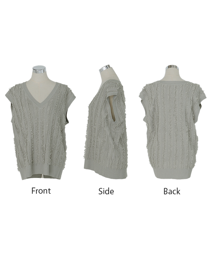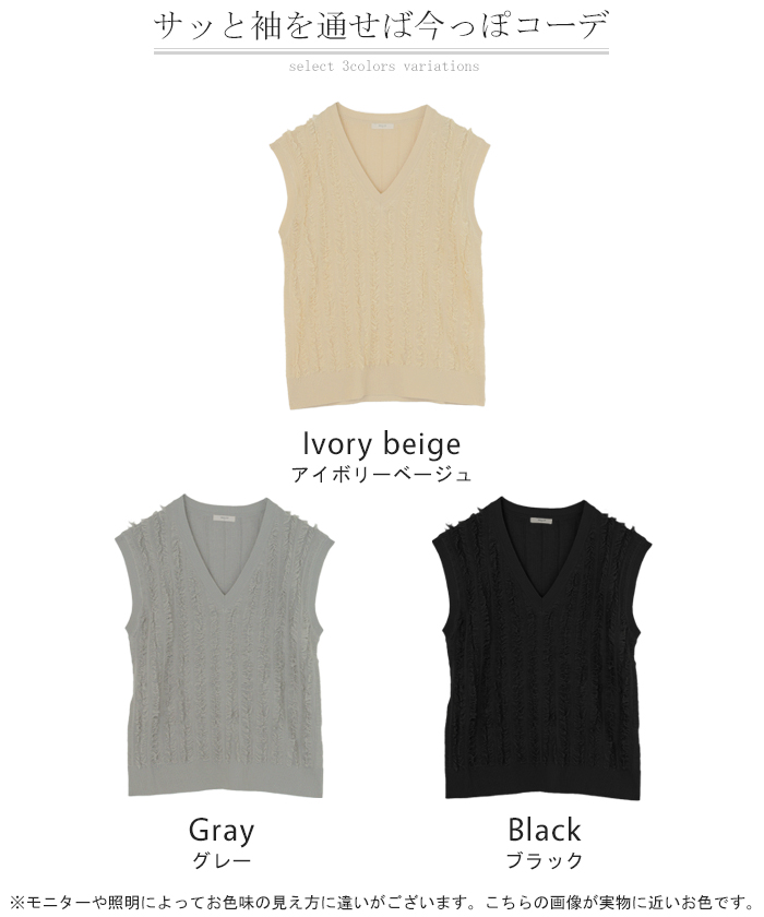 【早割10%OFF】 2026SS新作 ベスト ニット フリンジ ■2月下旬入荷 レディース トップス ロング ニットベスト レイヤード Vネック ロングベスト ノースリーブ チュニック リブ サマーニット 薄手 重ね着 カジュアル きれいめ ゆったり 体型カバー 大きいサイズ お尻が隠れる グレー 黒 春 夏 HUG.U