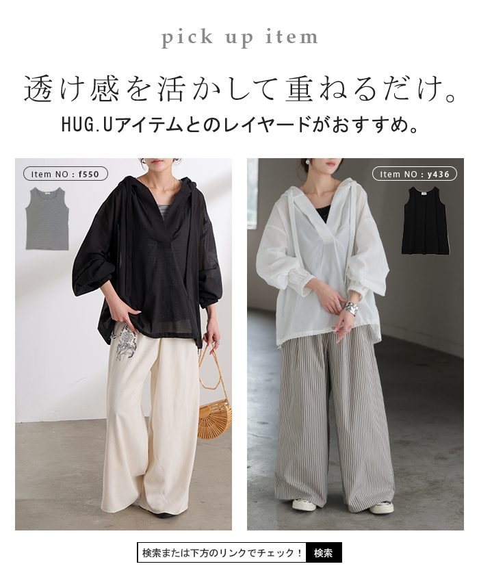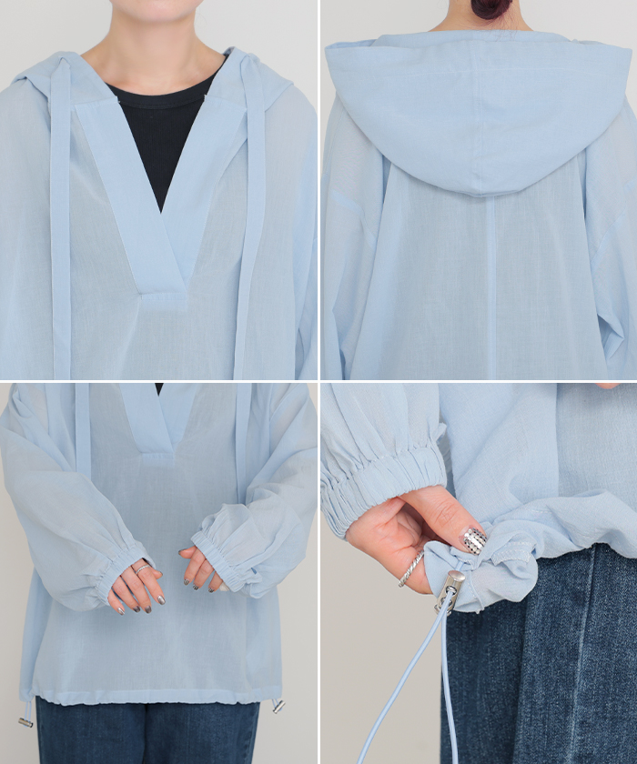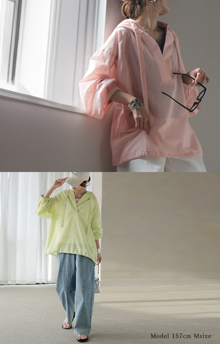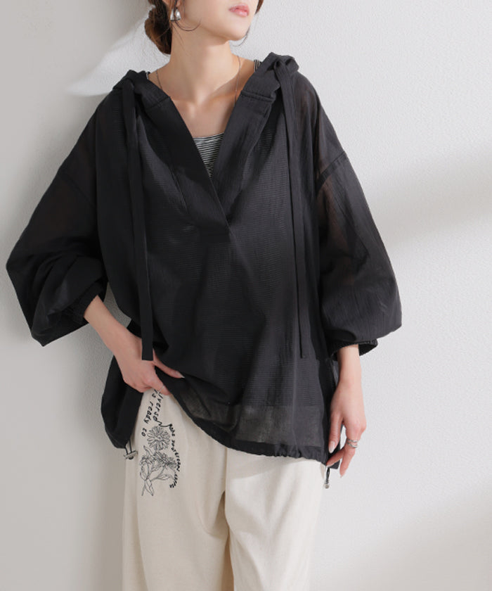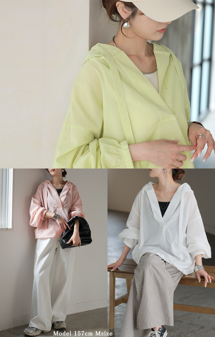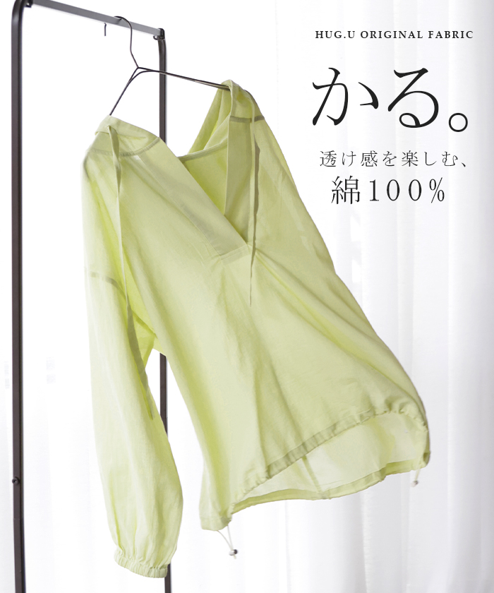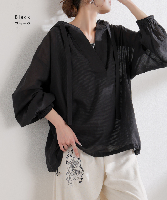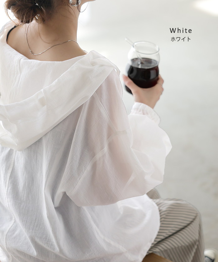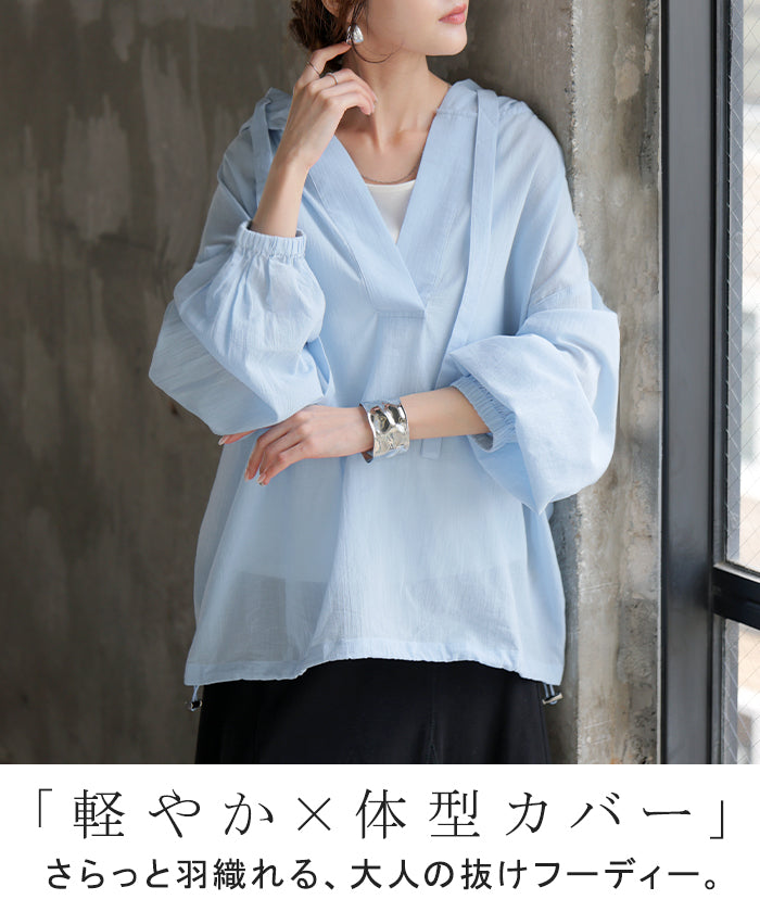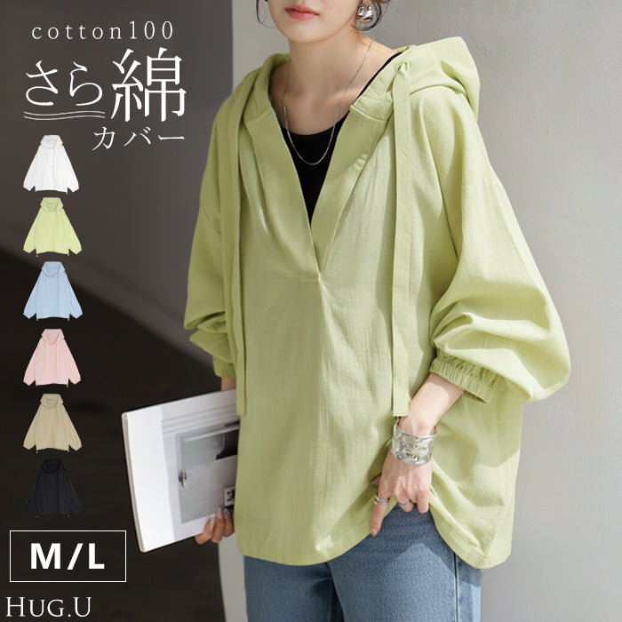 【早割10%OFF】2026SS新作 パーカー 綿100 ■一部3月中旬入荷 シアー レディース トップス コットン フーディー 透け感 Vネック 長袖 体型カバー スキッパー レイヤード 重ね着 プルオーバー お尻が隠れる 二の腕カバー 薄手 薄い 涼しい 大きいサイズ 海 水着 カジュアル 春 夏 ホワイト ブラック HUG.U