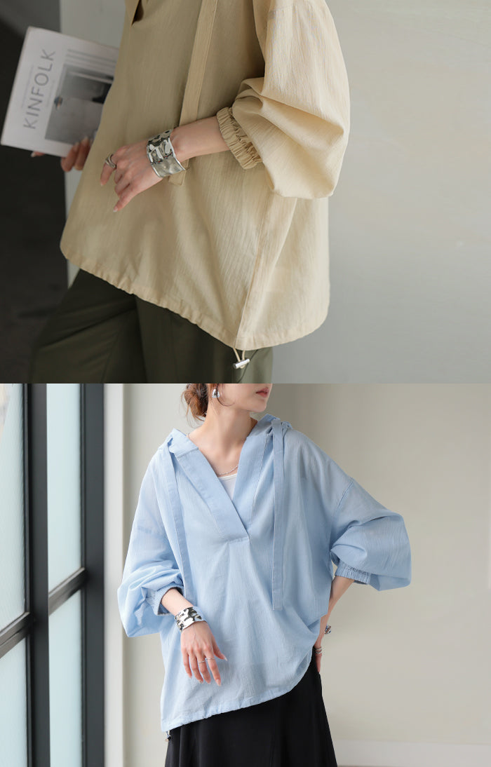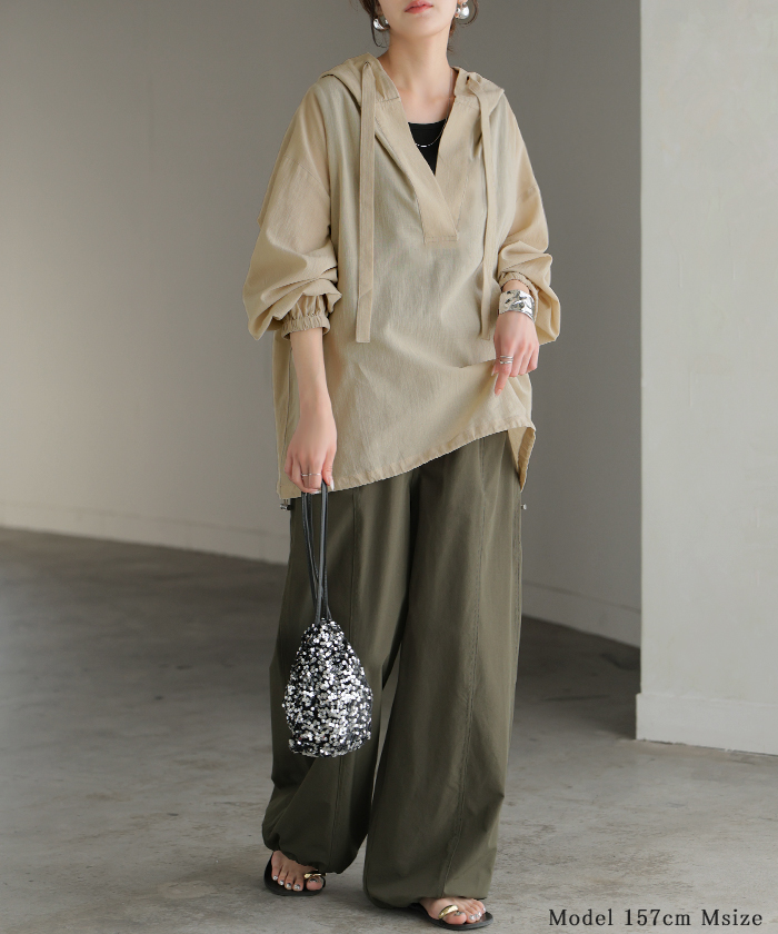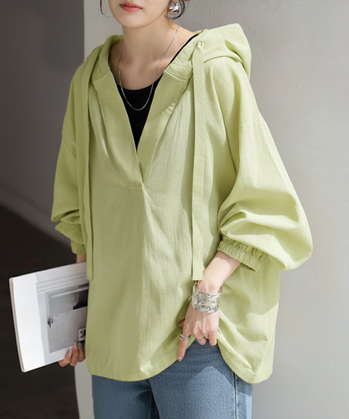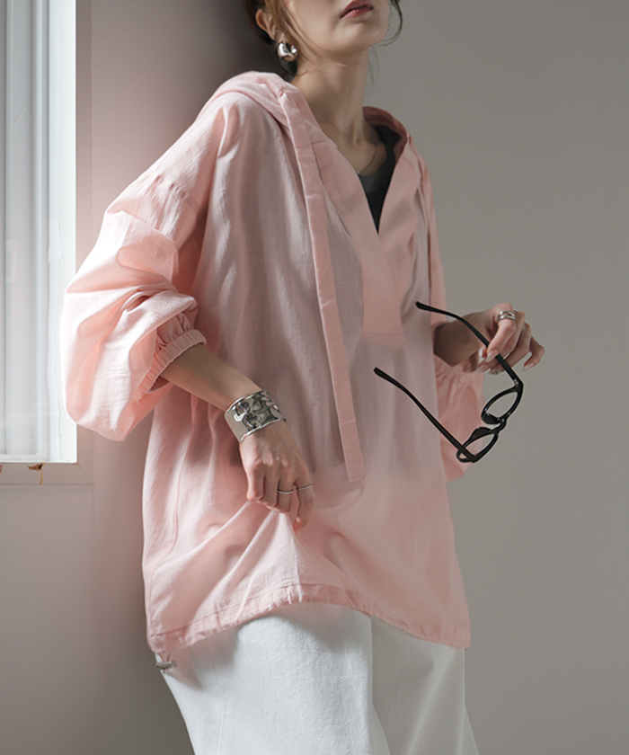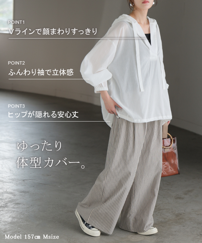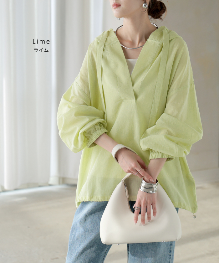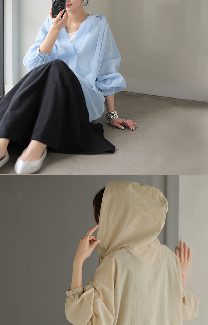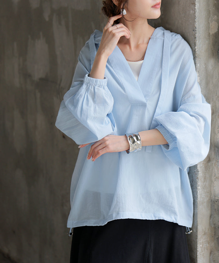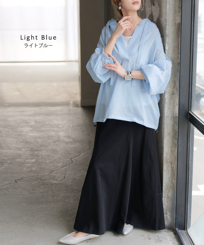 【早割10%OFF】2026SS新作 パーカー 綿100 ■一部3月中旬入荷 シアー レディース トップス コットン フーディー 透け感 Vネック 長袖 体型カバー スキッパー レイヤード 重ね着 プルオーバー お尻が隠れる 二の腕カバー 薄手 薄い 涼しい 大きいサイズ 海 水着 カジュアル 春 夏 ホワイト ブラック HUG.U