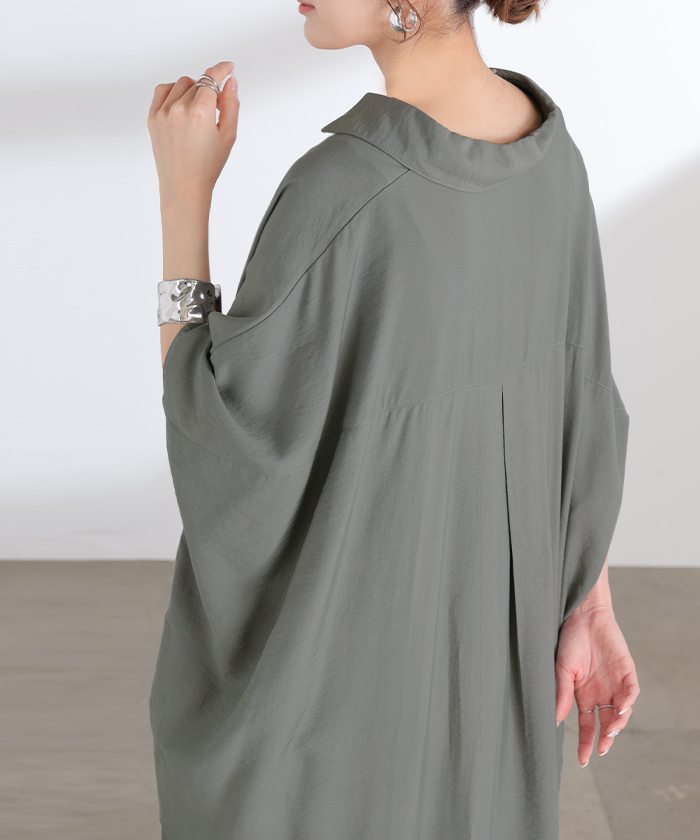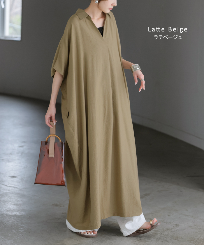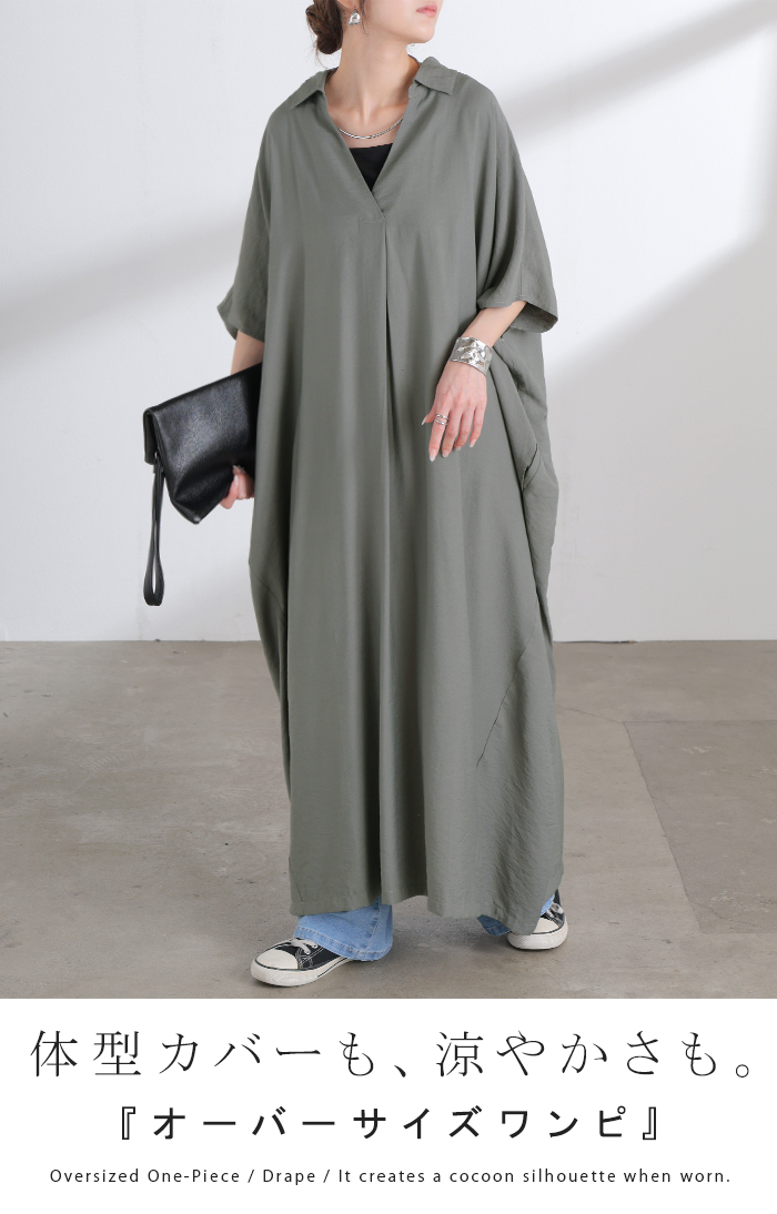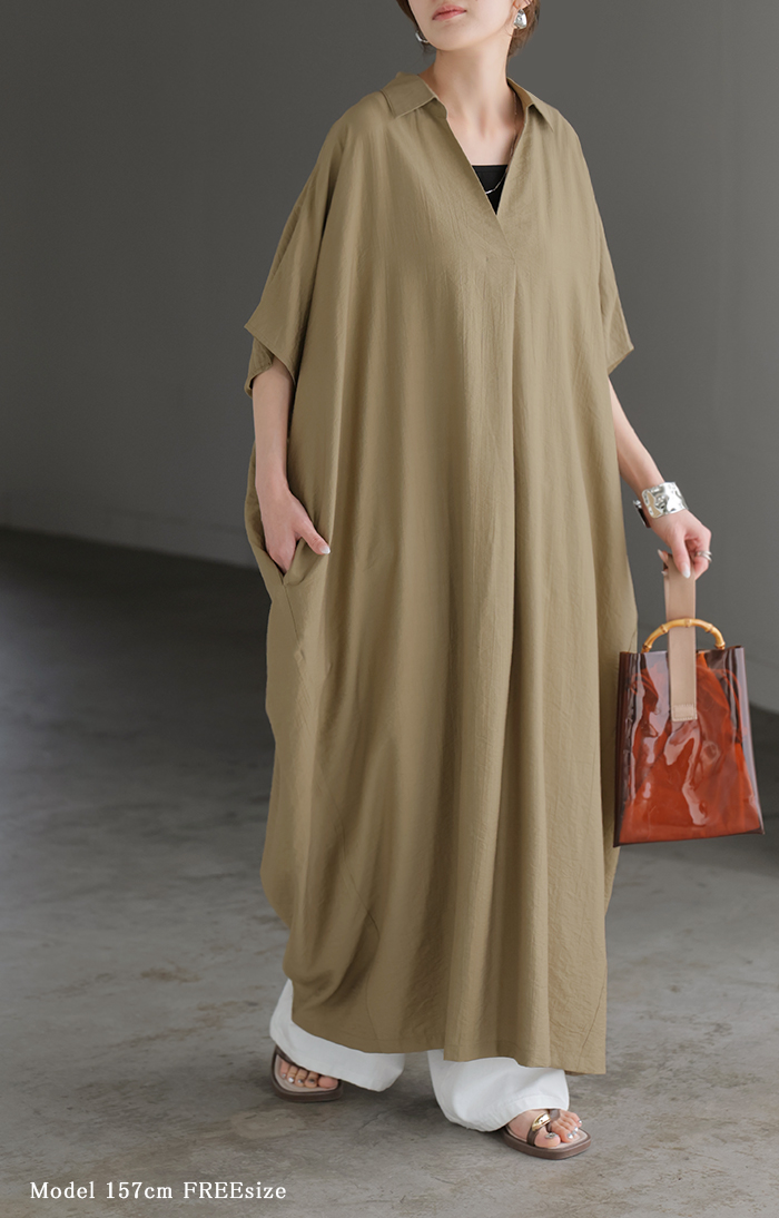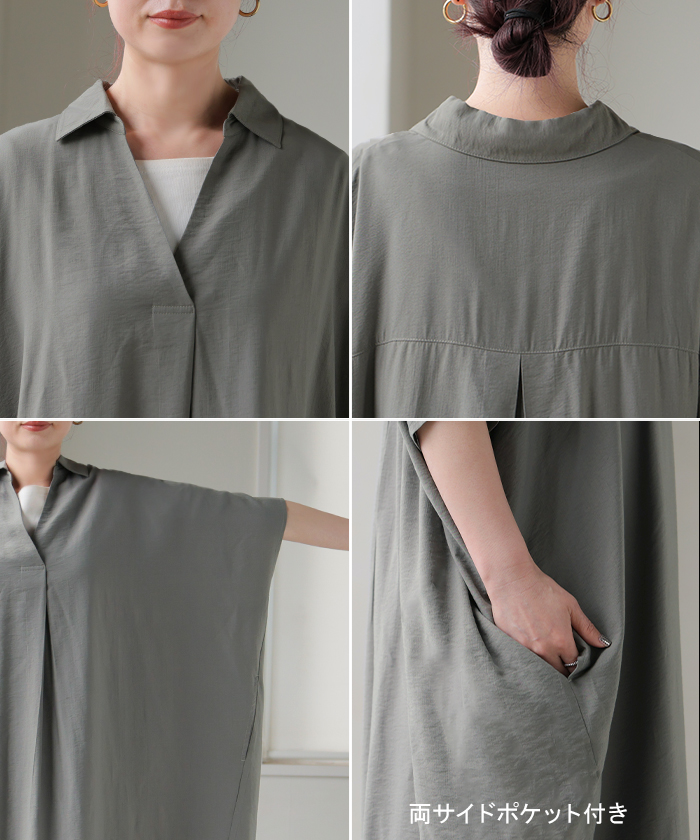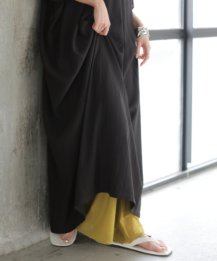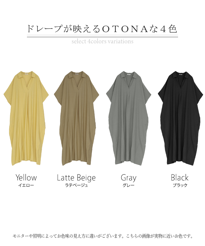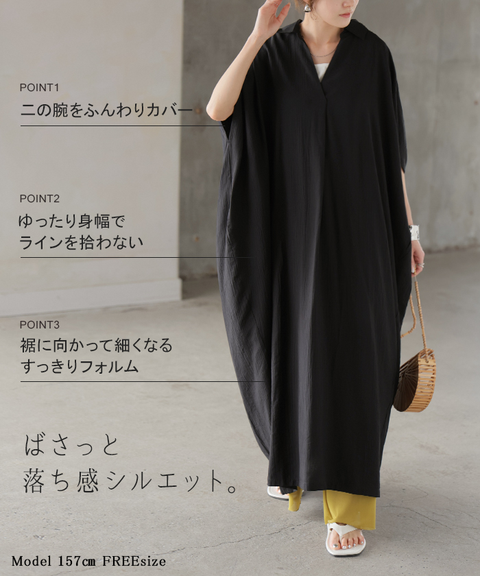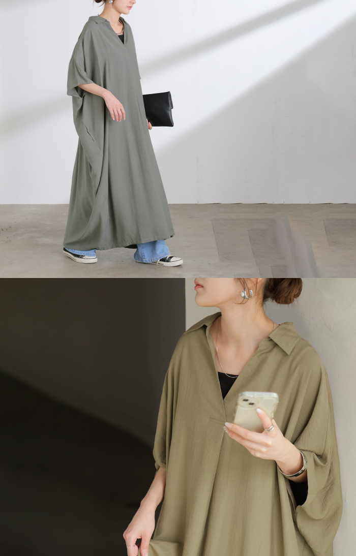 2026SS新作 ワンピース シャツワンピース ■4月下旬入荷 ロングワンピース レディース ワンピ ロング 半袖 Vネック 二の腕カバー 重ね着 レイヤード フレア Aライン 無地 薄手 ナチュラル オーバーサイズ 体型カバー ゆったり きれいめ 大きいサイズ ブラック イエロー 春 夏 HUG.U