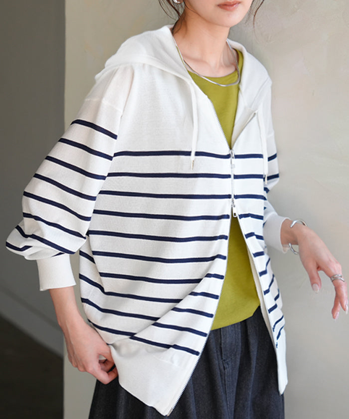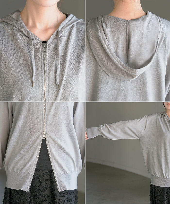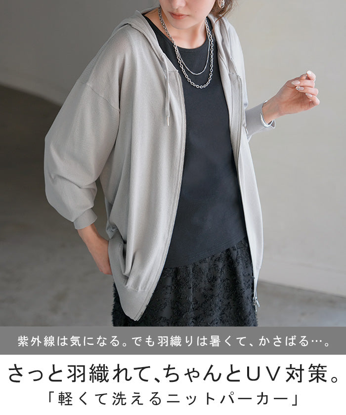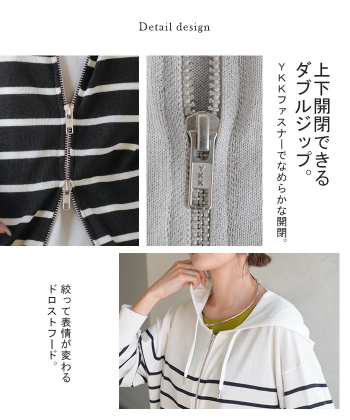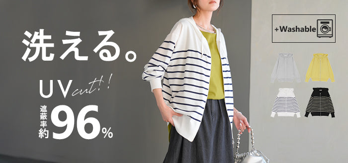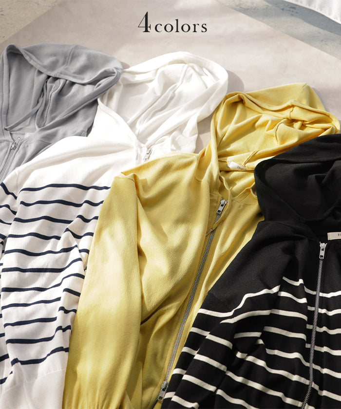【早割10%OFF】2026SS新作 パーカー 洗える UVパーカー ■3月上旬入荷 レディース トップス UVカット 長袖 マシンウォッシャブル 遮蔽率96% ダブルジップ 薄手 軽い 接触冷感 フード オフィス 冷房対策 日除け 体型カバー 紫外線対策 アウター 羽織り 無地 ボーダー 春 夏 ホワイト ブラック HUG.U