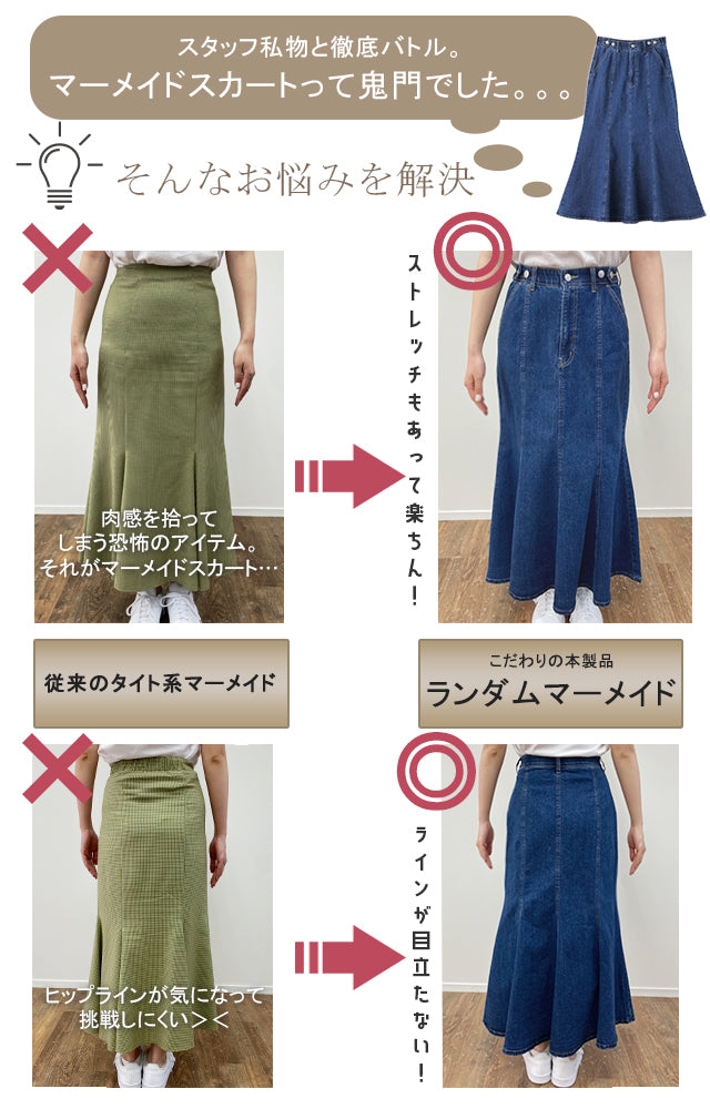 大人女子のお洒落を叶えるマーメイドシルエットのデニムスカートです。腰周りはスッキリ裾はフレアに広がりタイルアップ効果が期待できます。ウォッシュ加工を施すことでヴィンテージライクなこなれ感ある雰囲気に。■モデル着用アイテム ⇒ トップス■モデル着用アイテム ⇒ トップス■モデル着用アイテム ⇒ トップス■モデル着用アイテム ⇒ トップス■モデル着用アイテム ⇒ トップス■モデル着用アイテム ⇒ トップス■モデル着用アイテム ⇒ トップス※モデル着用商品は在庫切れ・販売終了・リンク切れの場合がございます。