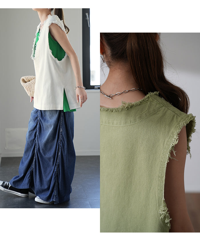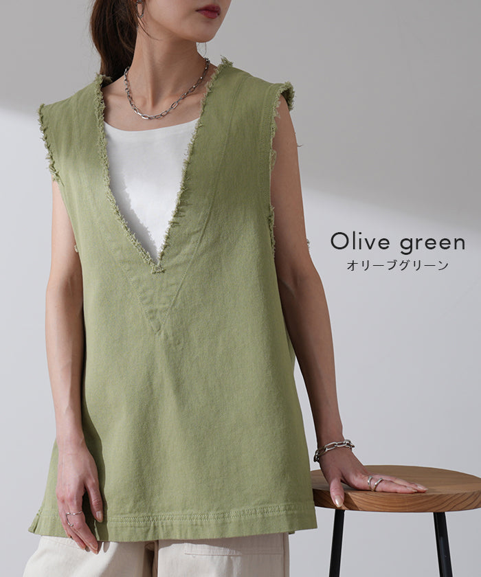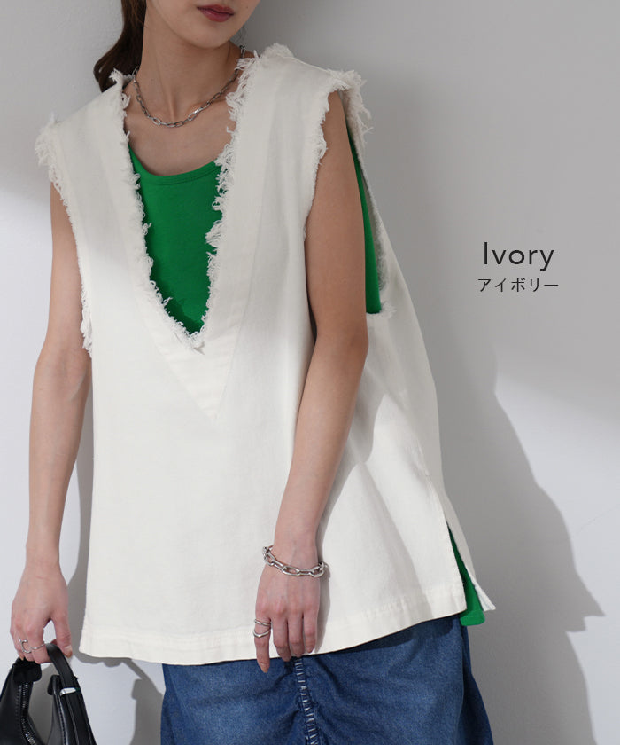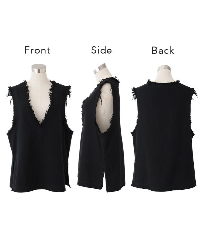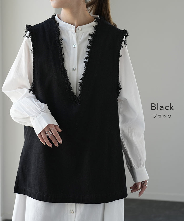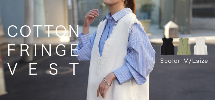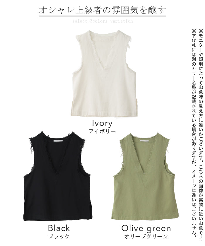 今っぽ 「 重ねて 体型カバー 」フリンジ ベスト チュニック フリンジベスト 綿100 レディース レイヤード トップス ロング スリット 深Vネック 重ね着 Vネック お洒落 袖なし お尻が隠れる 薄手 ジレ ビッグ 黒 ブラック 大きいサイズ 春 夏 HUG.U メール便