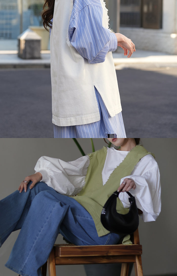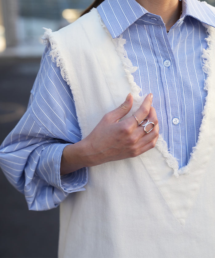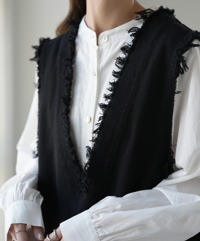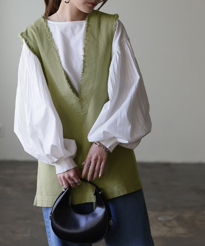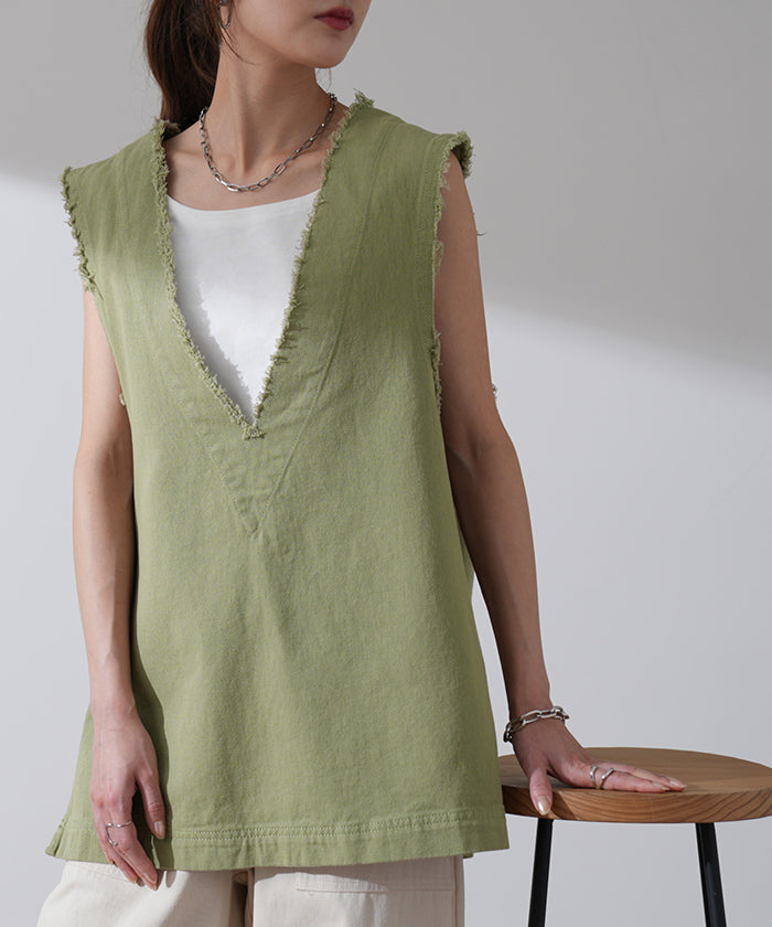 着るだけで旬な印象にしてくれるトレンドライクな深Vネックベストです。ワンピースの上に重ねたりカットソー合わせでカジュアルに着たりと着回し力抜群。身幅も細すぎず自由自在にレイヤードスタイルを楽しめます。