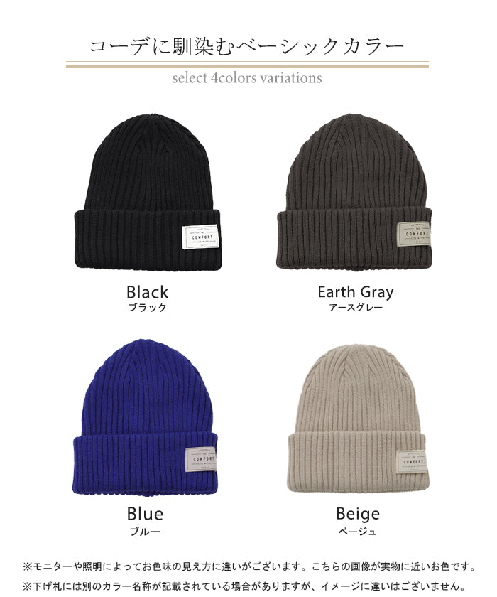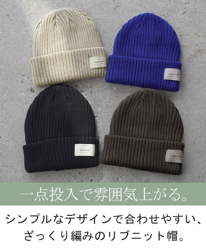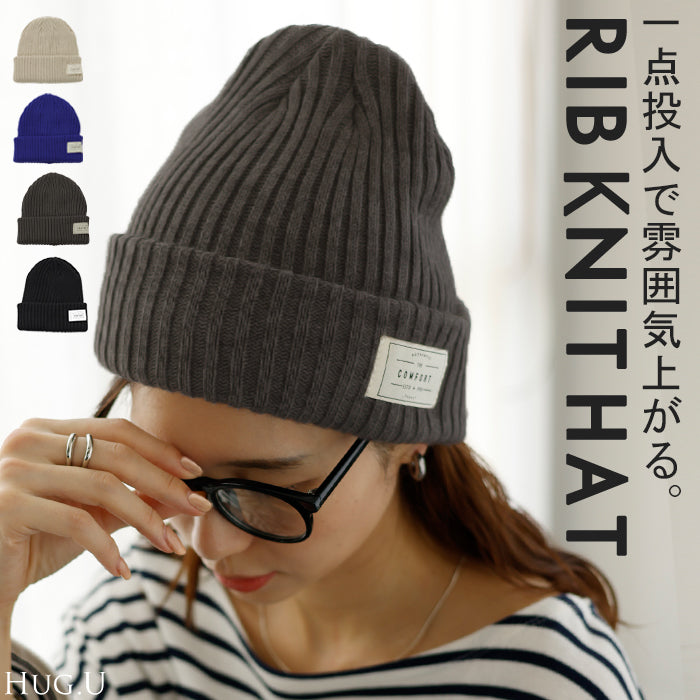 ニット帽 『 ベーシックで合わせやすい 』手洗い可 帽子 ビーニー ワッチ 防寒 レディース メンズ ハット ニットキャップ ネームタグ 付き お出かけ ゆったり 厚手 リブ ワッチキャップ スノボ キャップ ぼうし 女性 大人 ブラック 春 夏 春夏 HUG.U メール便