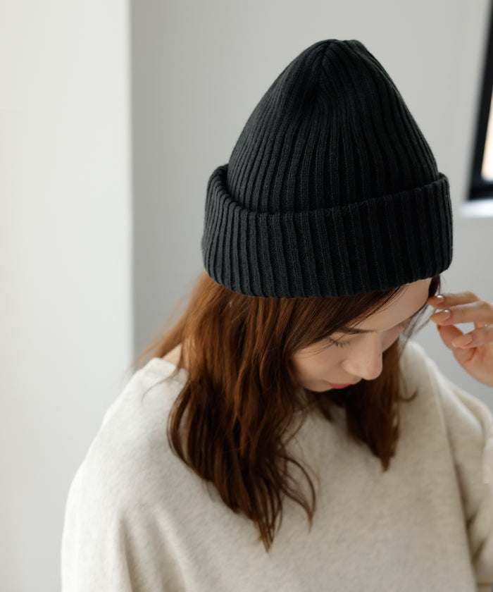 リブ編みでスッキリしたシルエットのニットキャップです。ユニセックスでお使いいただける着回し性の高いデザインでプレゼントにもオススメ。カジュアルからストリートまで幅広いスタイルに合わせていただけます。※ニットの特性上、実際の製品の寸法とサイズ表記に差が生じることがございます。予めご了承下さいませ。