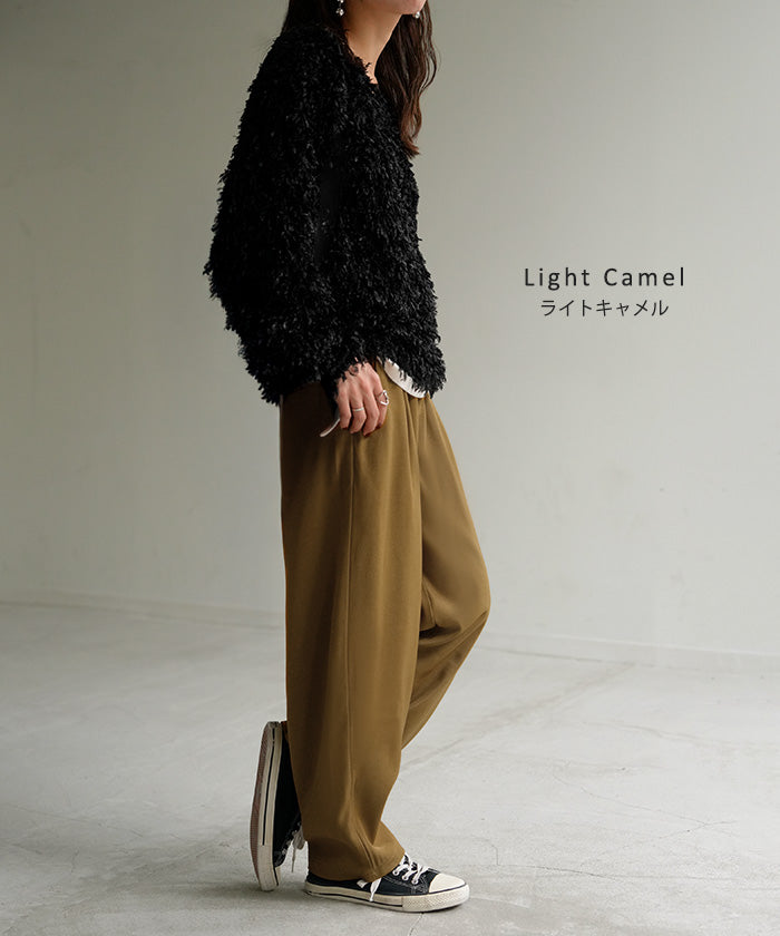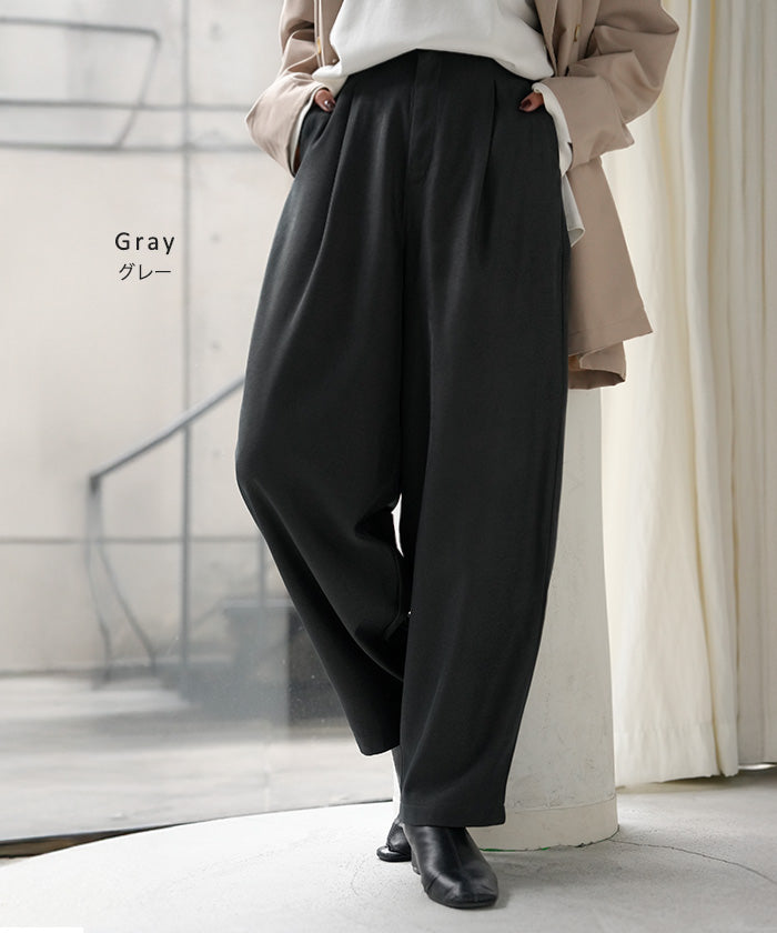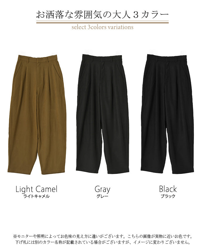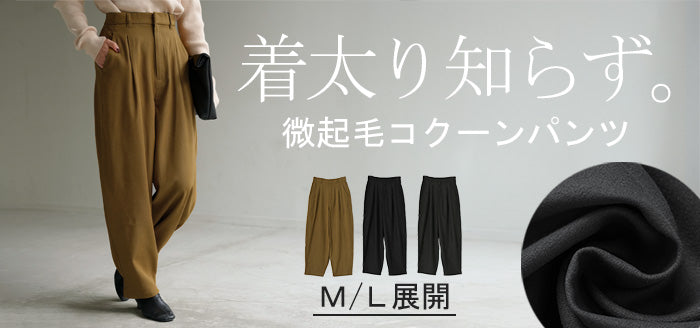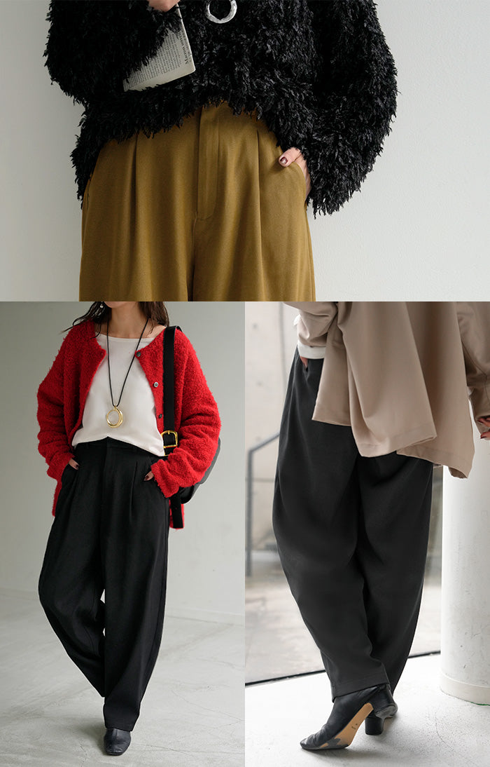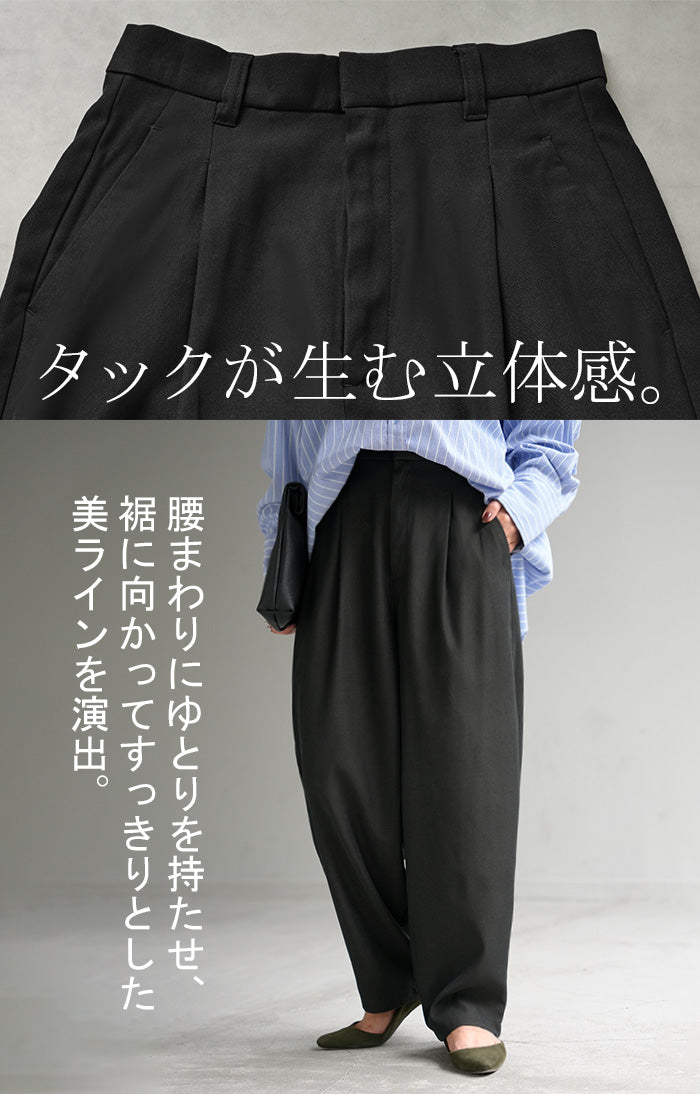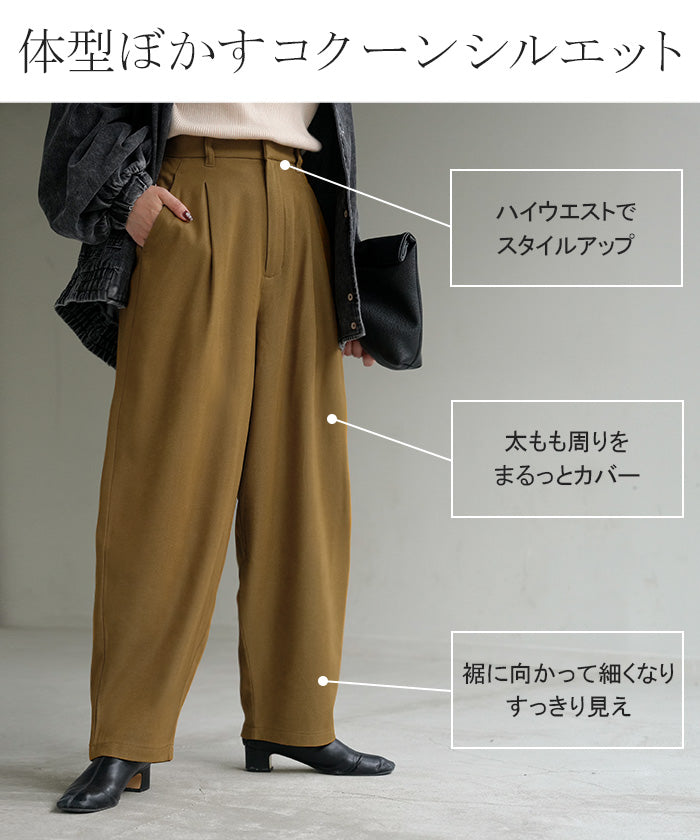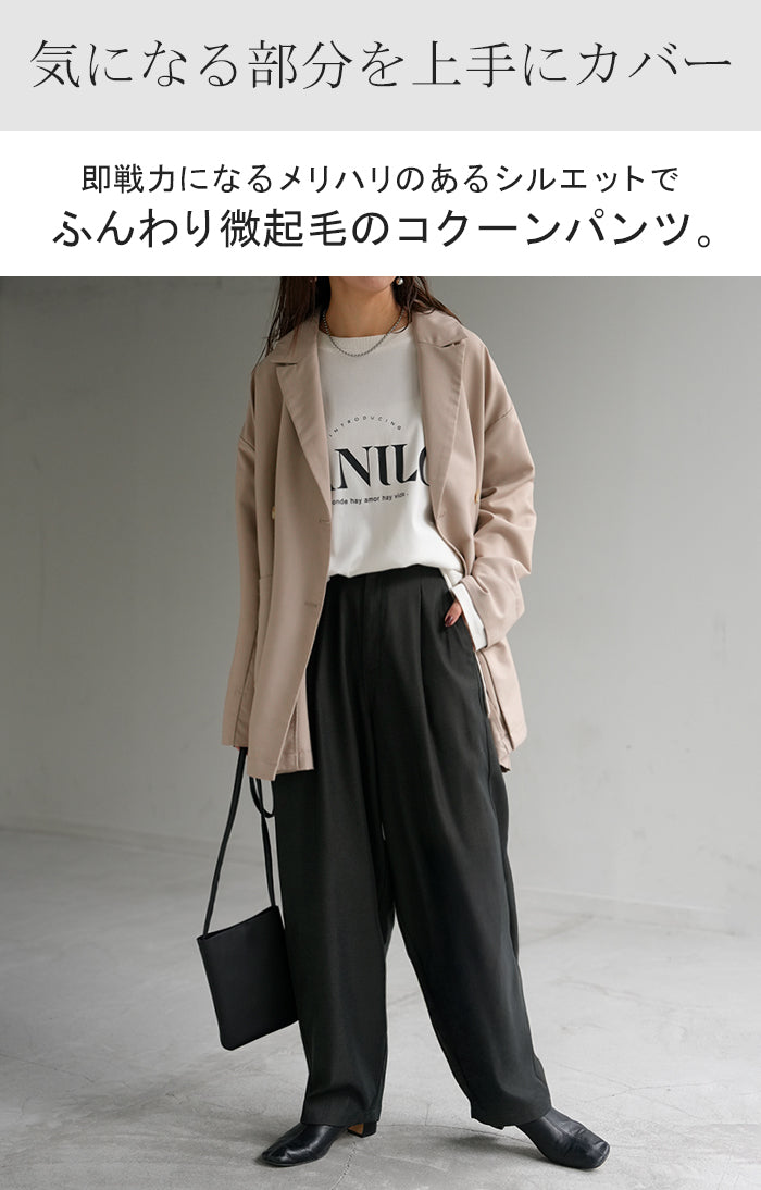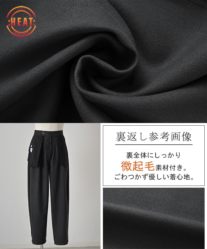 2025AW新作 パンツ 裏起毛 コクーン レディース ワイド ワイドパンツ ロング ロングパンツ テーパードパンツ スラックス 微起毛 タック 体型カバー ボトムス ゆったり ハイウエスト ウエストゴム オフィスカジュアル ストレッチ 大きいサイズ 黒 グレー 秋 冬 HUG.U