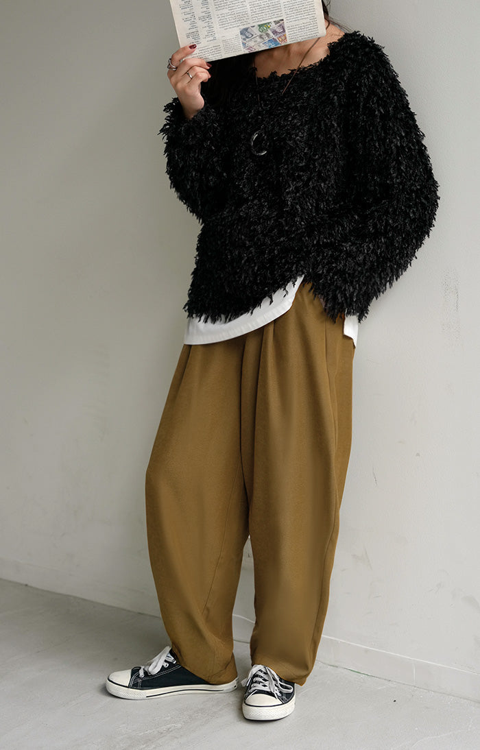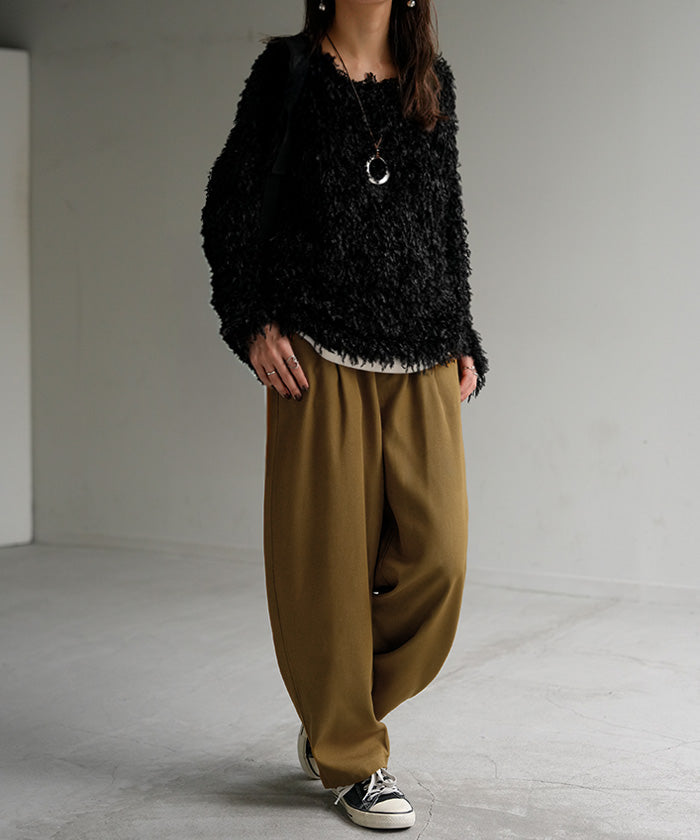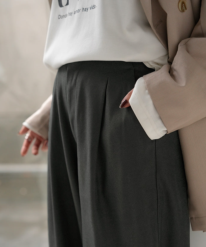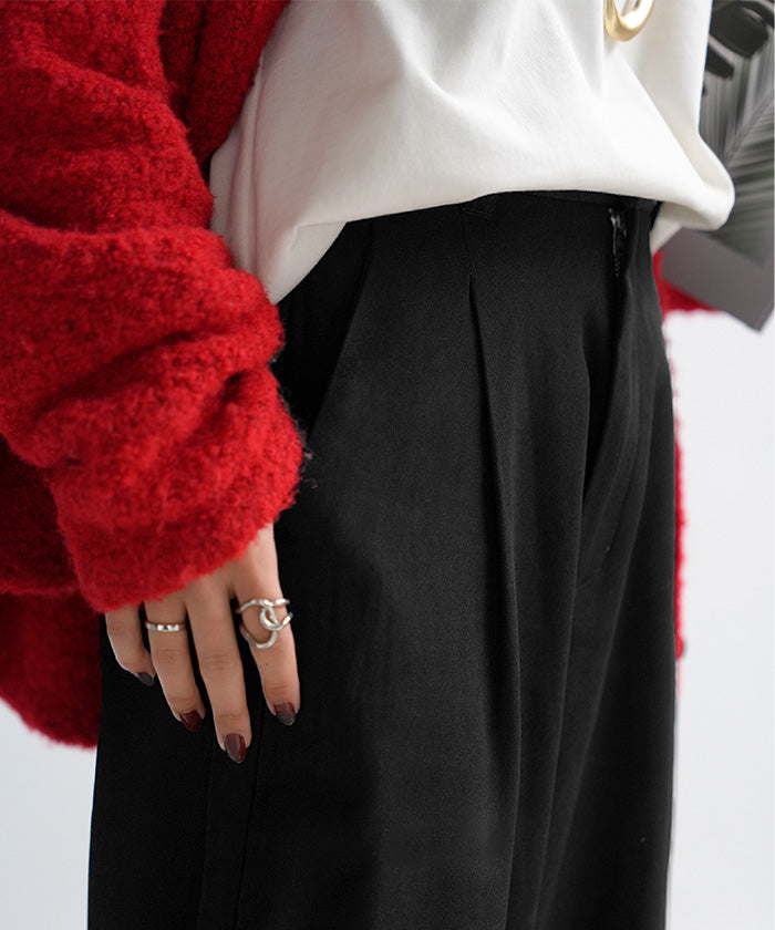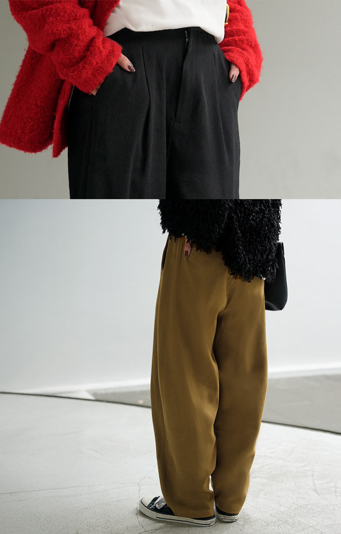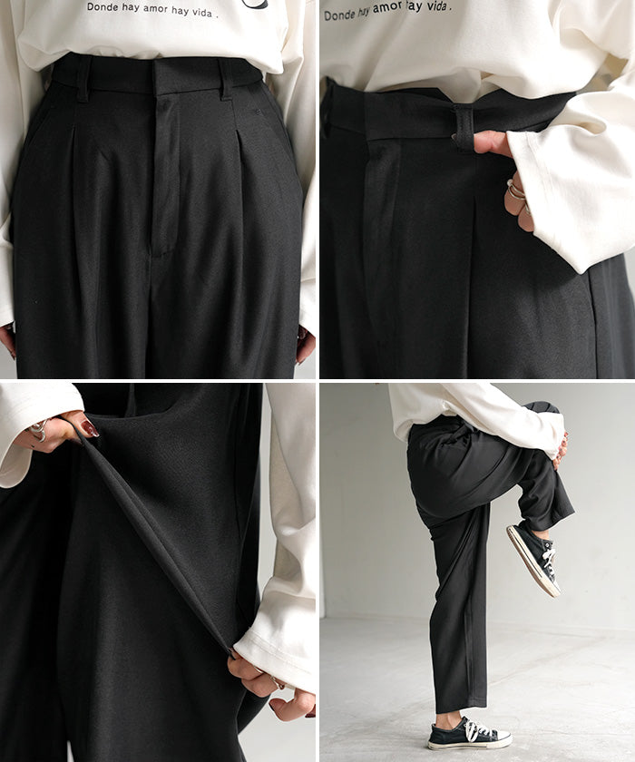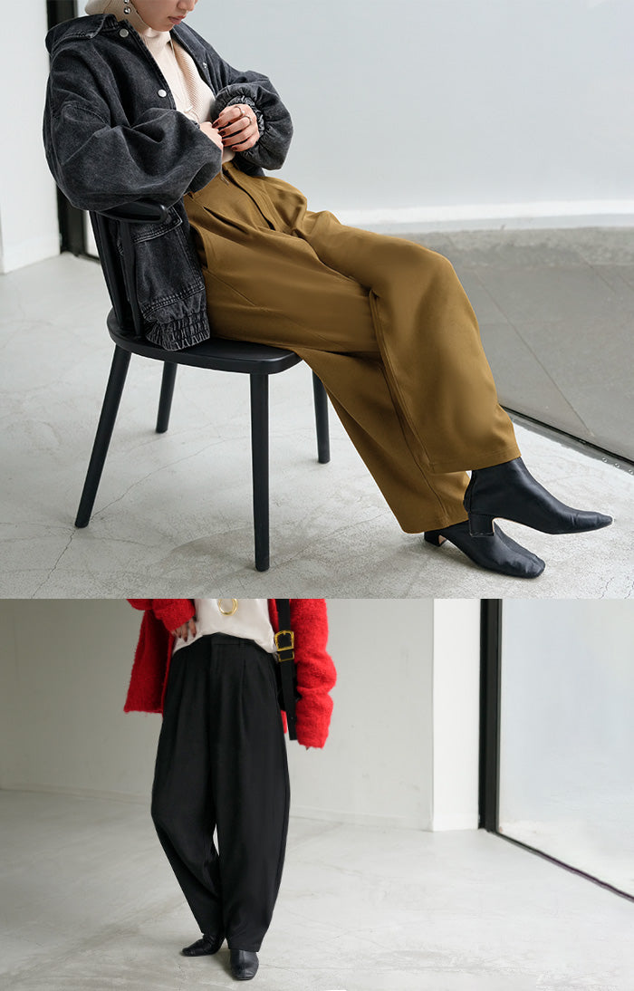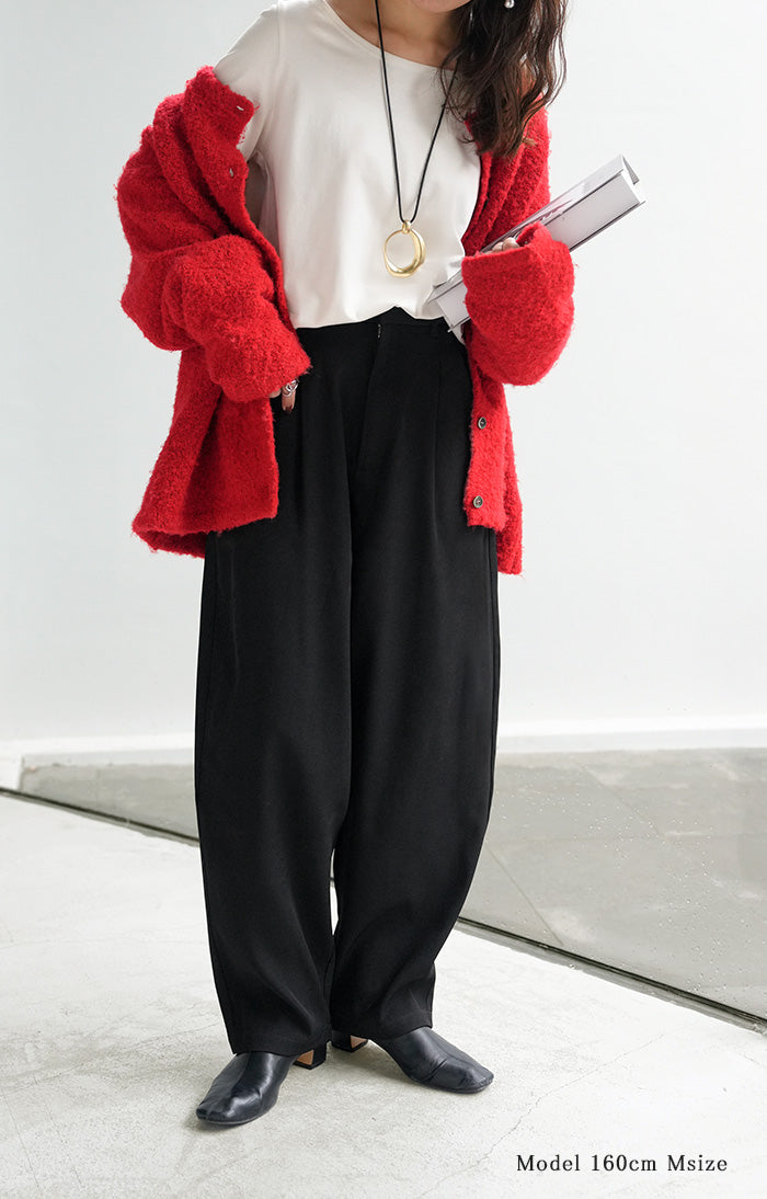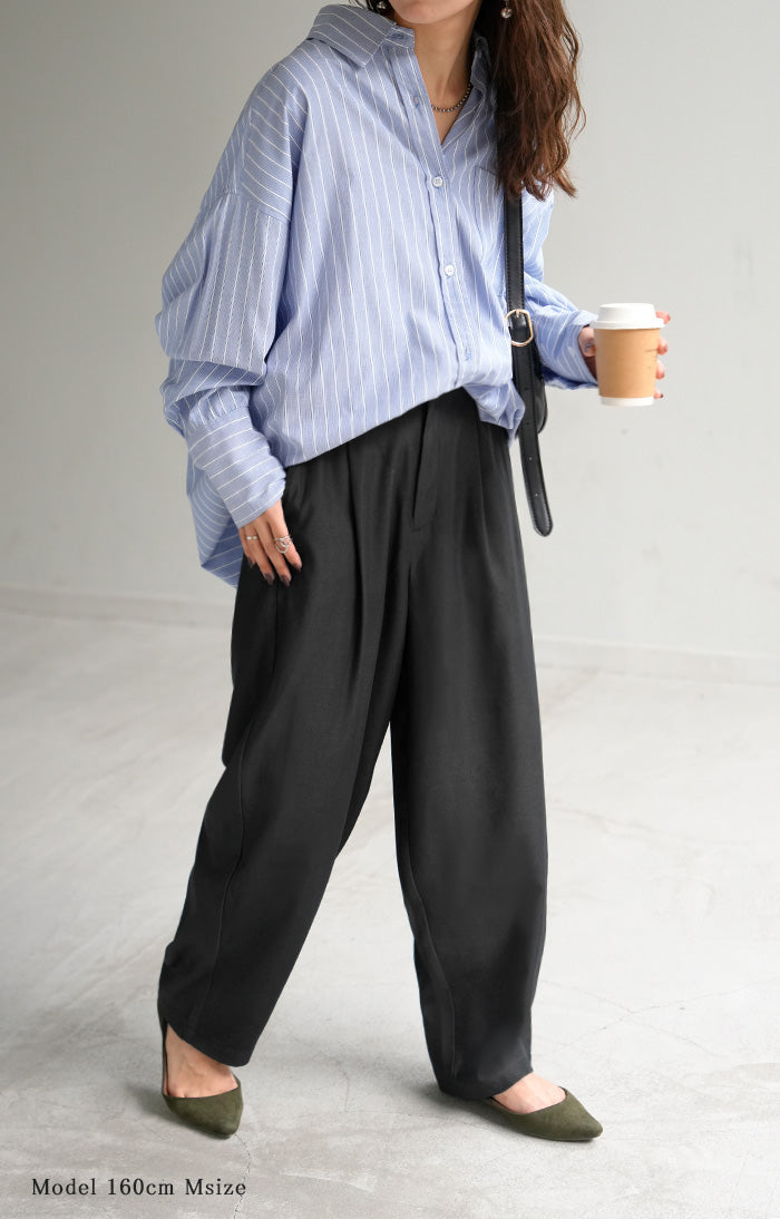 2025AW新作 パンツ 裏起毛 コクーン レディース ワイド ワイドパンツ ロング ロングパンツ テーパードパンツ スラックス 微起毛 タック 体型カバー ボトムス ゆったり ハイウエスト ウエストゴム オフィスカジュアル ストレッチ 大きいサイズ 黒 グレー 秋 冬 HUG.U