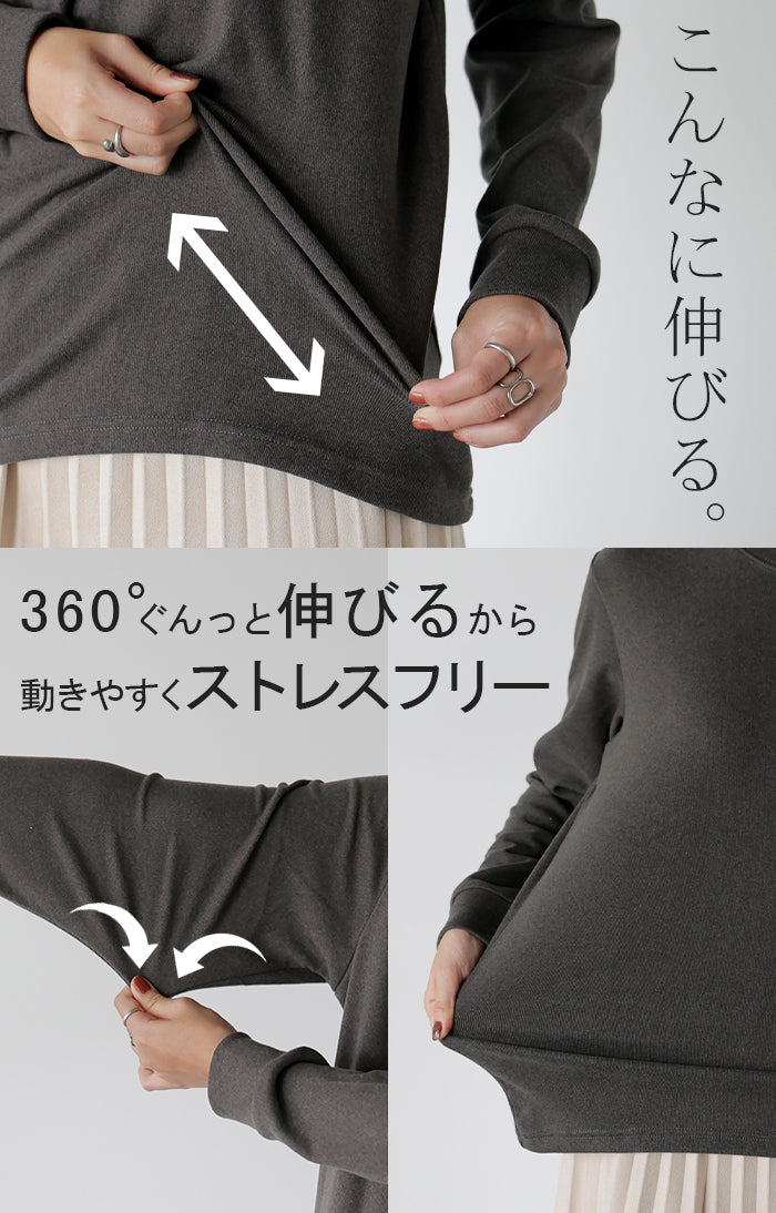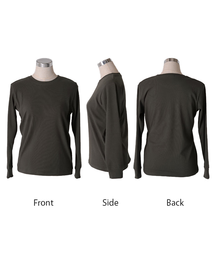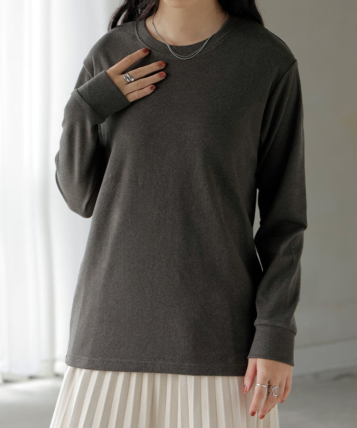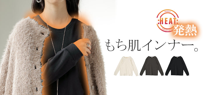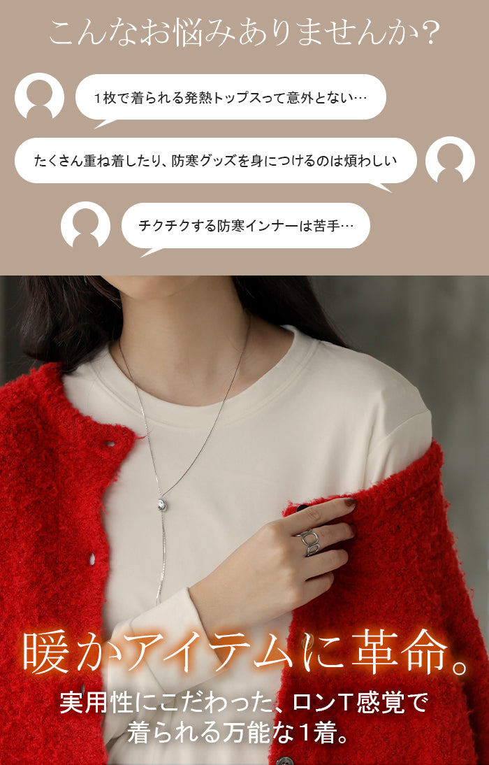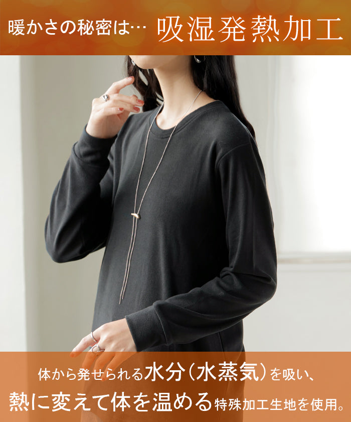 2025AW新作 インナー 発熱 ロンT レディース 吸湿発熱 ヒートインナー トップス 長袖 Tシャツ カットソー ロング ティーシャツ ロンティー クルーネック 長い 無地 タイト レイヤード 重ね着 ストレッチ 暖かい 防寒 微起毛 温活 すっきり 白 黒 グレー 秋 冬 HUG.U