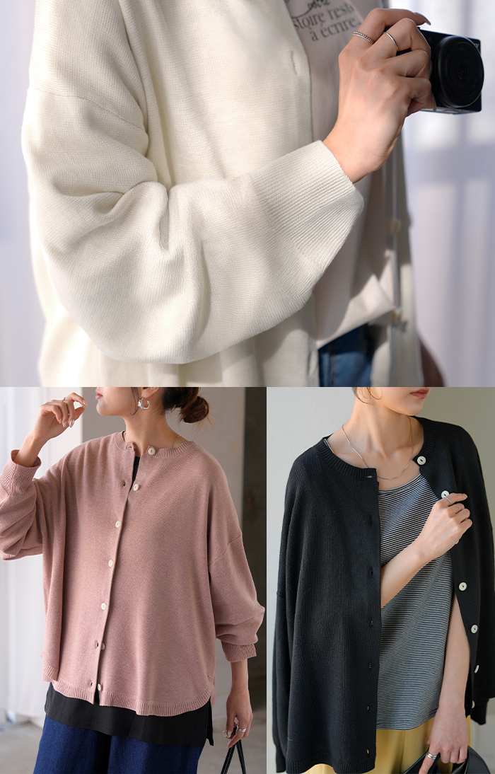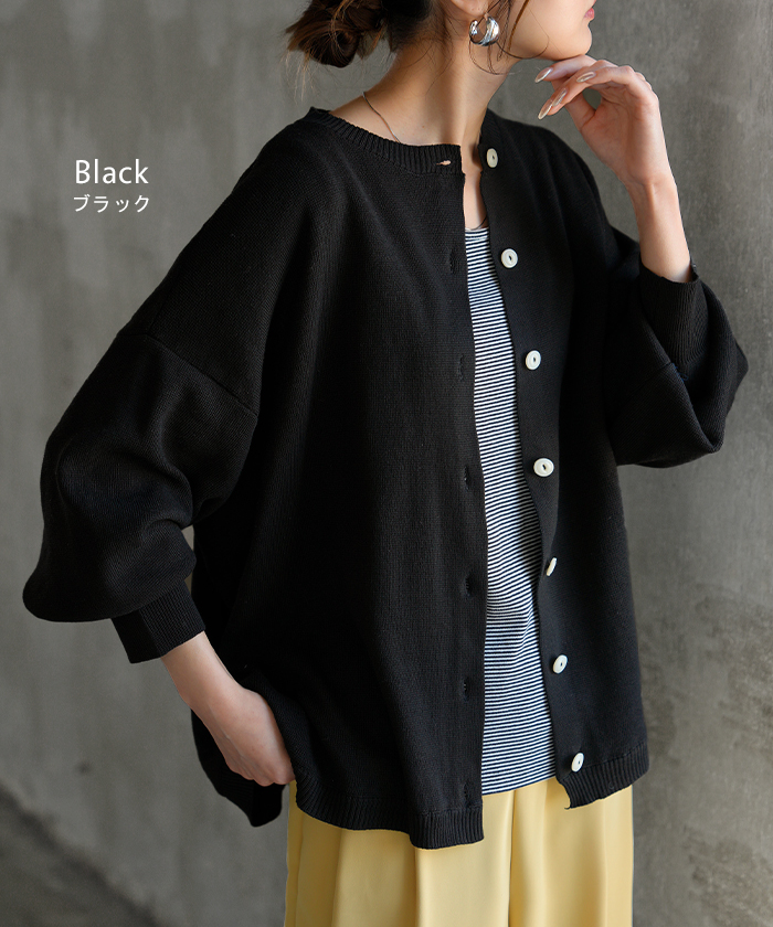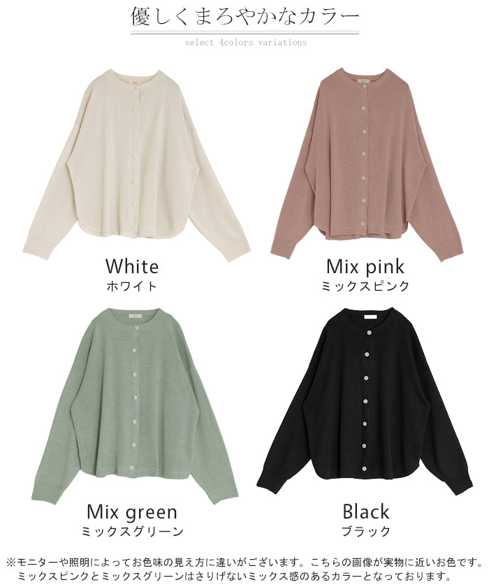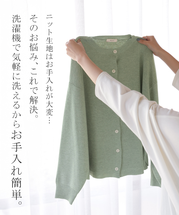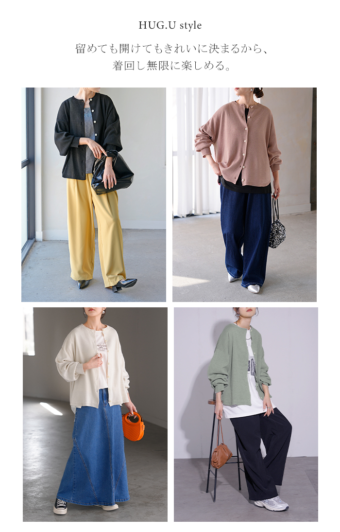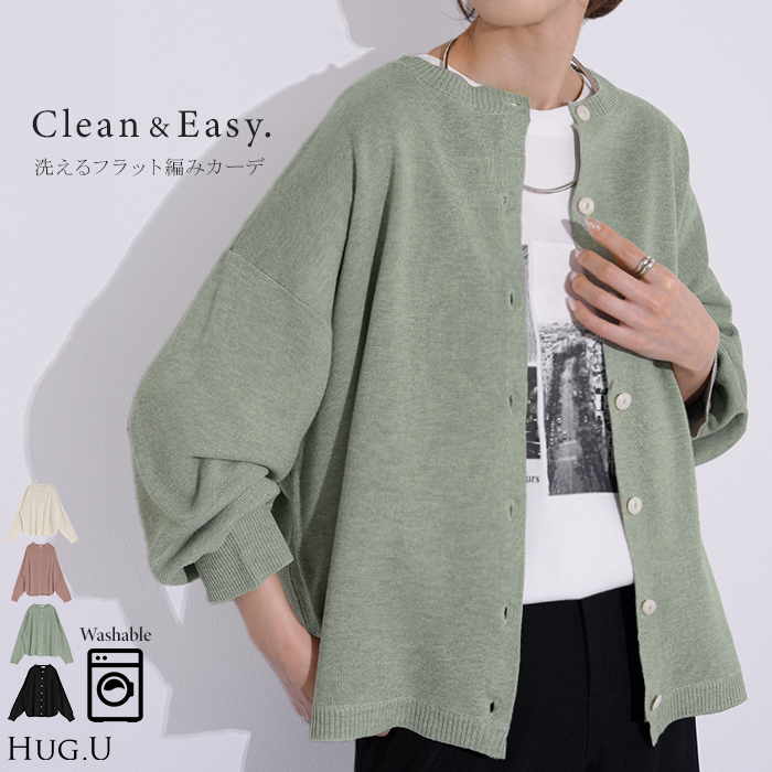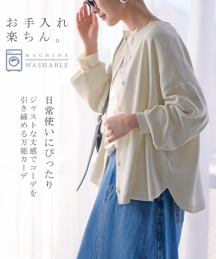 【早割10%OFF】2026SS新作 カーディガン ニット 洗える レディース ■2月下旬入荷 トップス セーター カーデ ニットカーディガン ジャスト丈 長袖 羽織 クルーネック リブ ウォッシャブル イージーケア ラウンドヘム チュニック ゆったり 体型カバー 大きいサイズ カジュアル 黒 白 春 夏 HUG.U