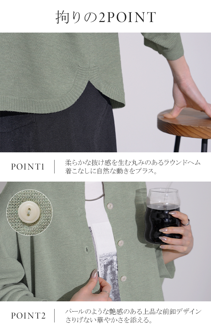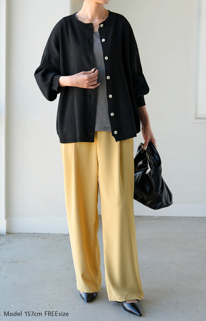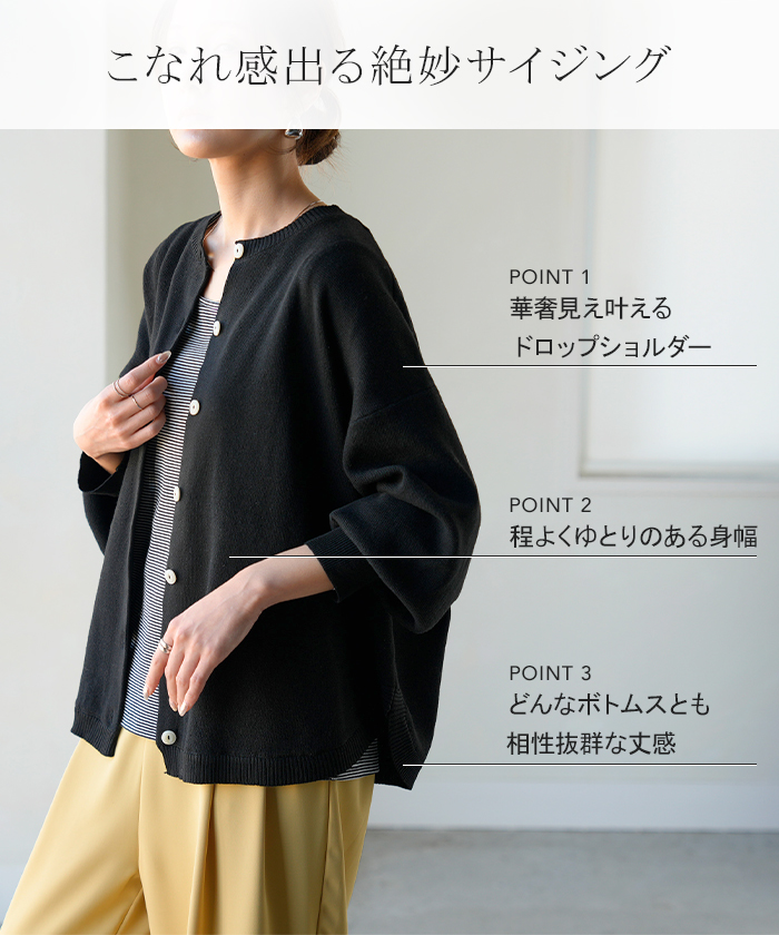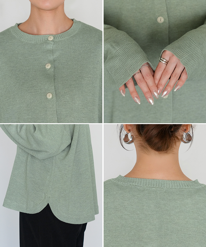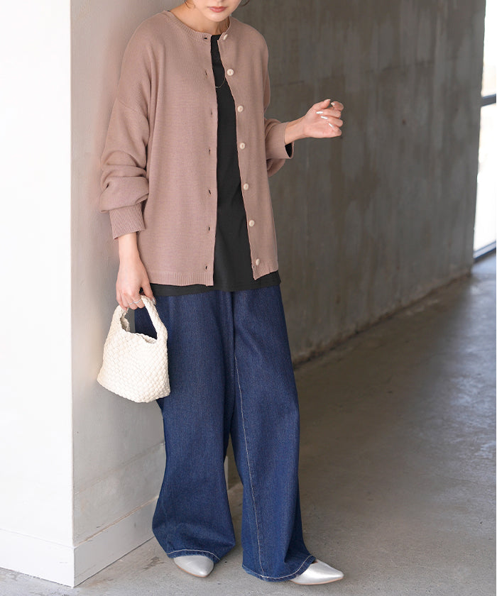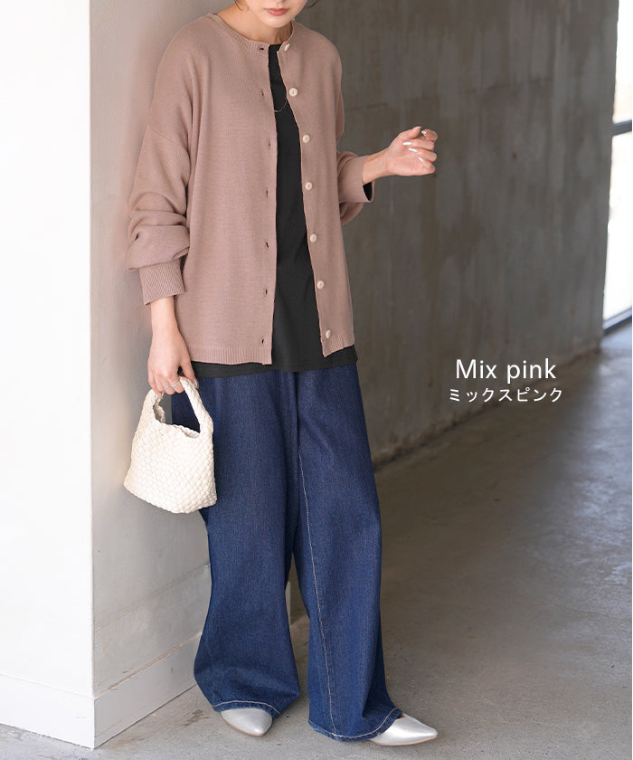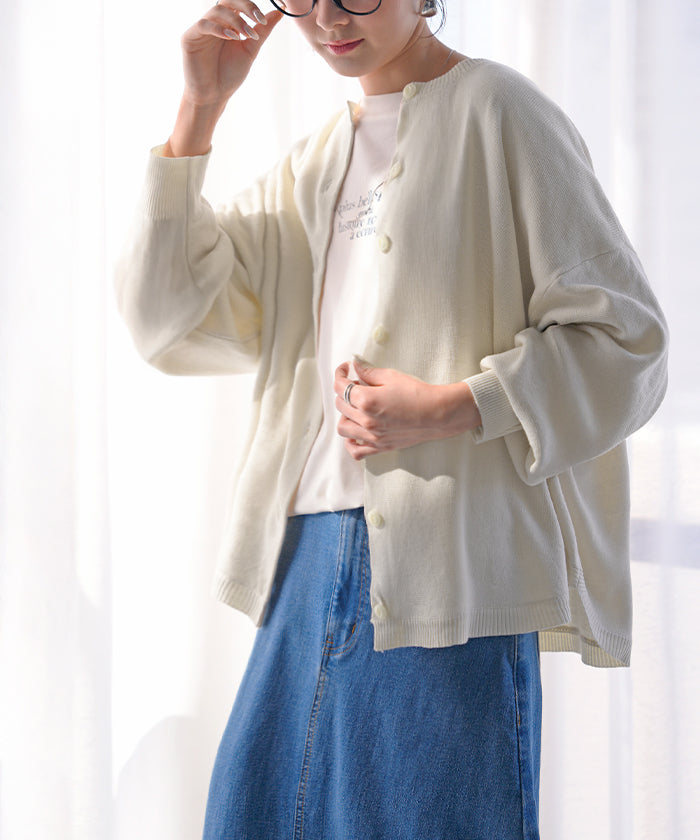 【早割10%OFF】2026SS新作 カーディガン ニット 洗える レディース ■2月下旬入荷 トップス セーター カーデ ニットカーディガン ジャスト丈 長袖 羽織 クルーネック リブ ウォッシャブル イージーケア ラウンドヘム チュニック ゆったり 体型カバー 大きいサイズ カジュアル 黒 白 春 夏 HUG.U
