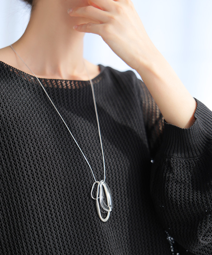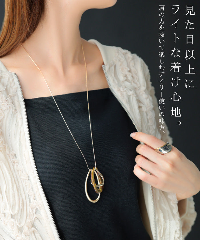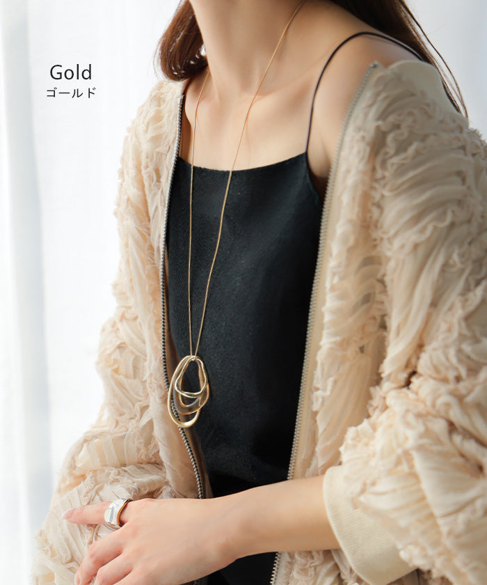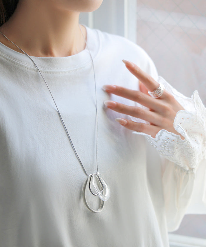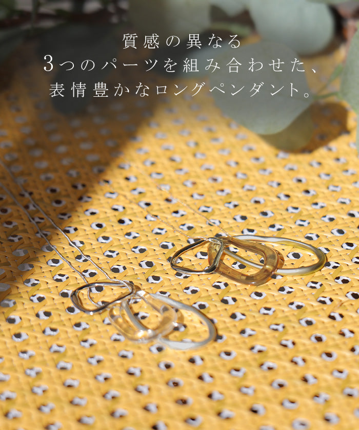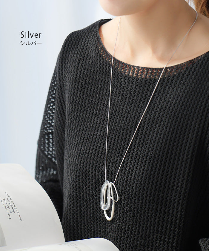 2026SS新作 ネックレス モチーフ ニュアンス ■5月上旬入荷 レディース アクセサリー アクセ ペンダント ロング gold silver サークルネックレス モチーフネックレス サークル 異素材 クリア メタル ゴールド シルバー 長め チェーン 大きい きれいめ 合金 女性 金 銀 春 夏 HUG.U メール便