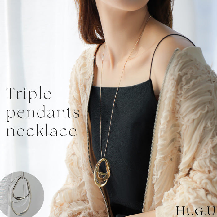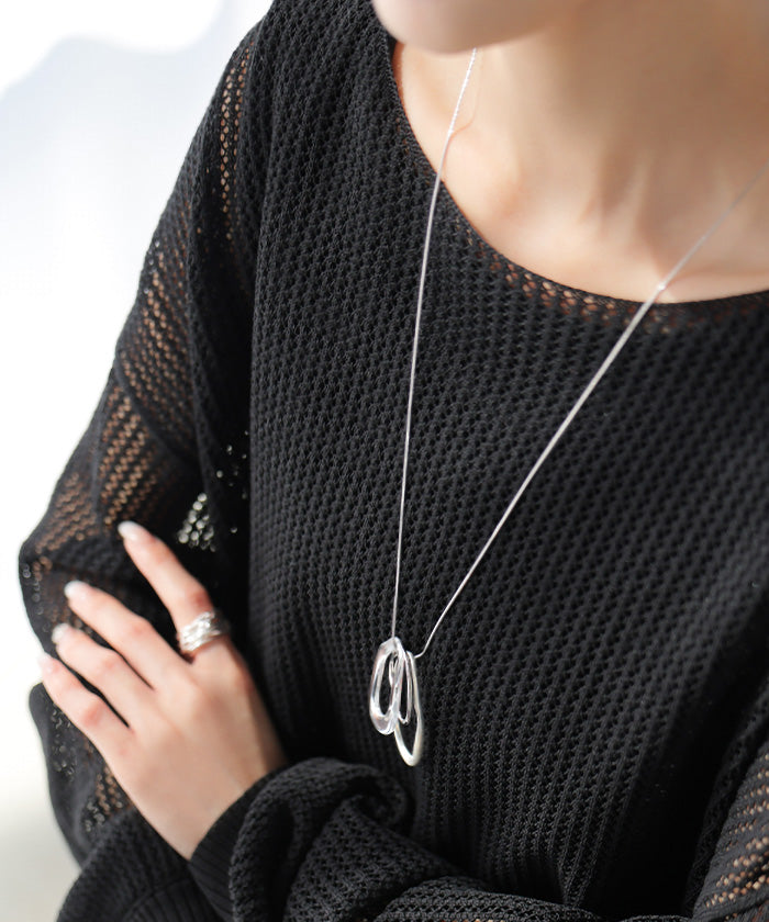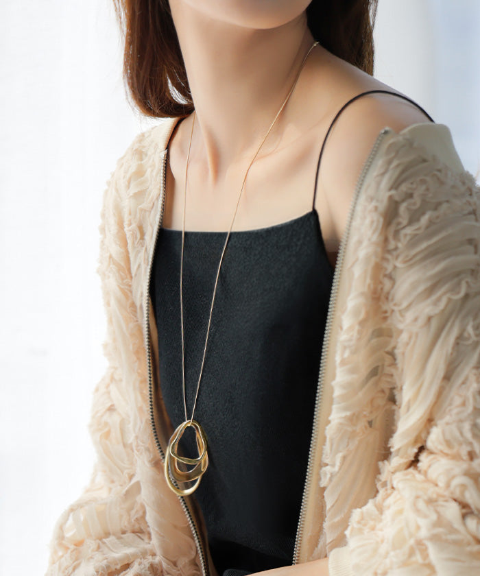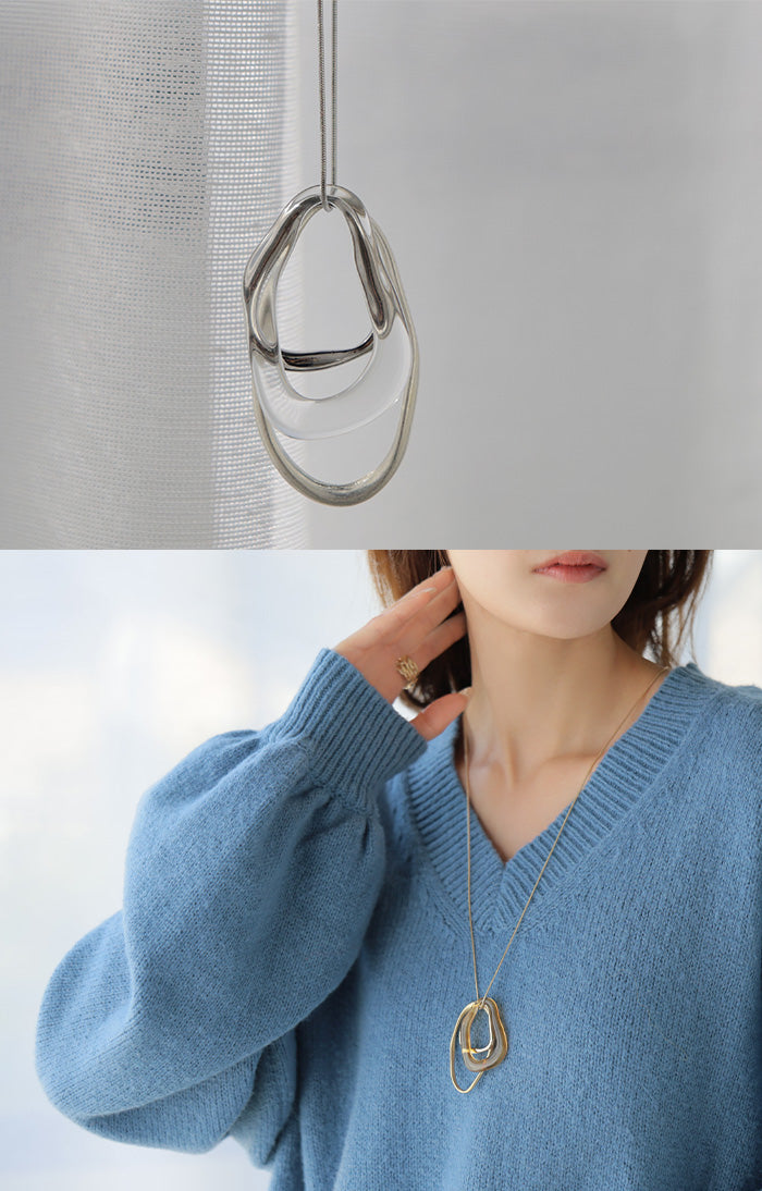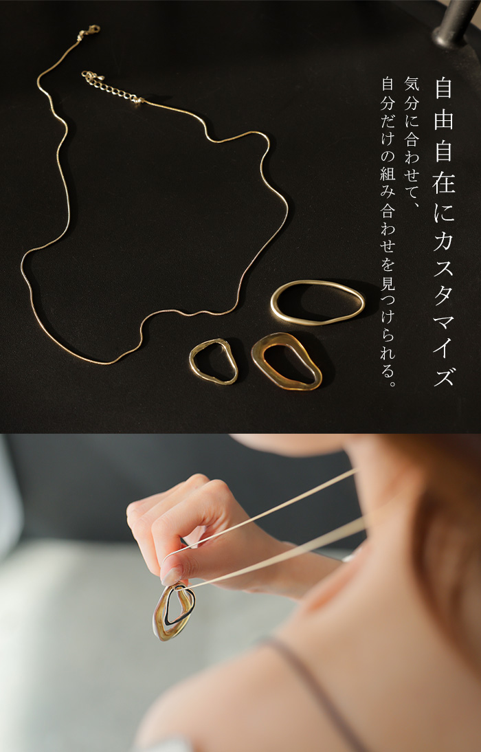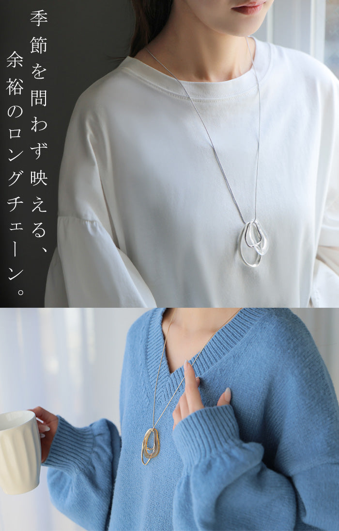 2026SS新作 ネックレス モチーフ ニュアンス ■5月上旬入荷 レディース アクセサリー アクセ ペンダント ロング gold silver サークルネックレス モチーフネックレス サークル 異素材 クリア メタル ゴールド シルバー 長め チェーン 大きい きれいめ 合金 女性 金 銀 春 夏 HUG.U メール便