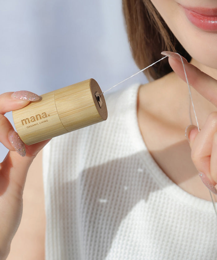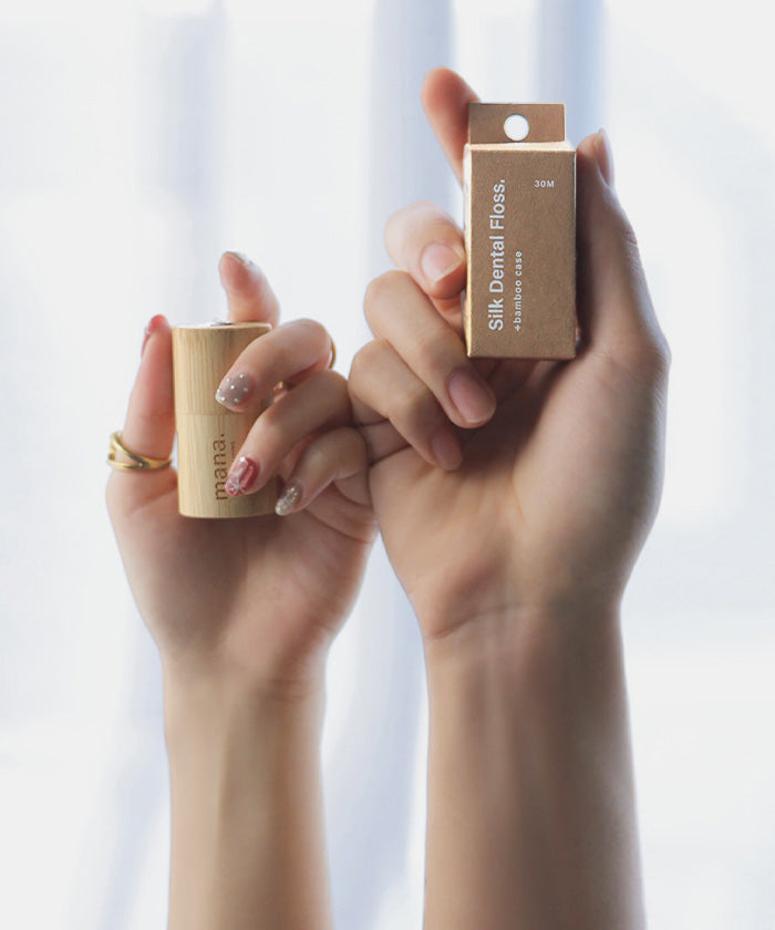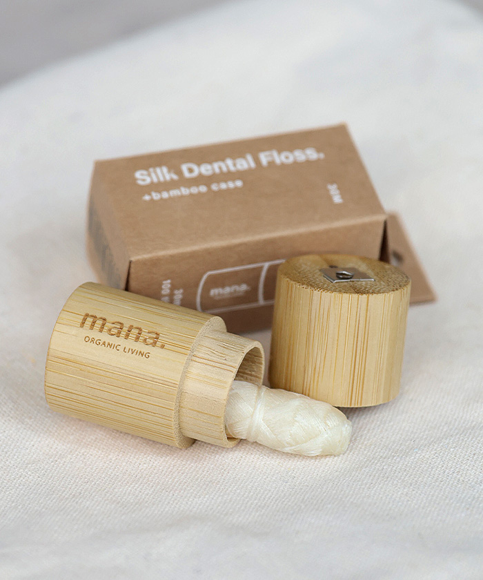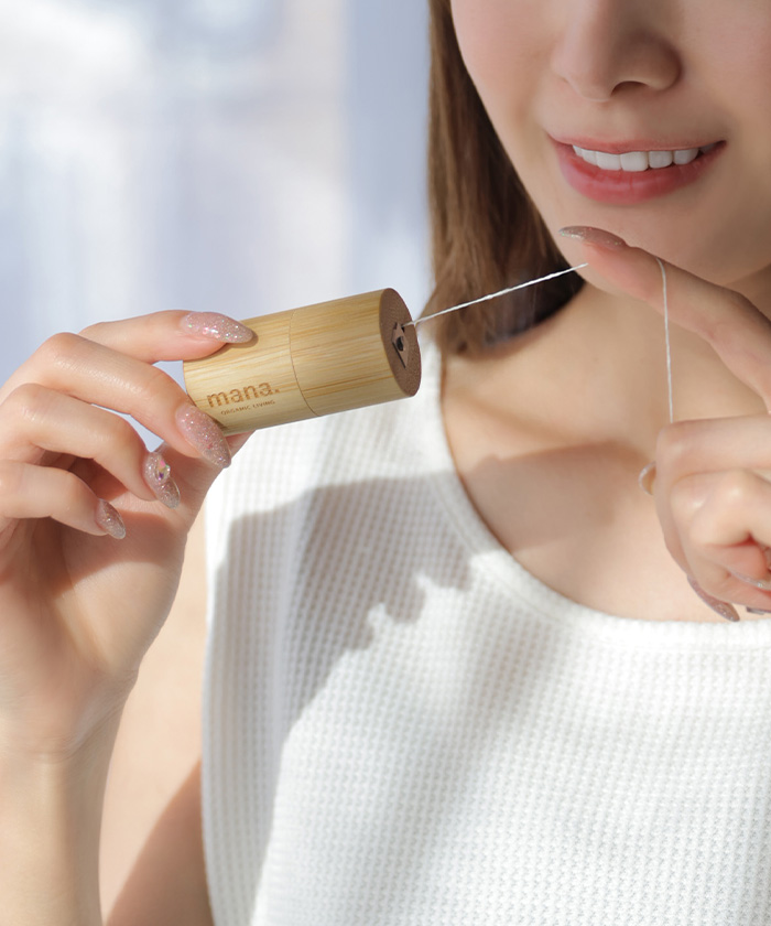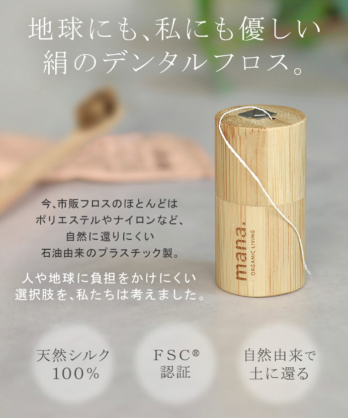 市販のフロスのほとんどが、ポリエステルやナイロンなど石油由来プラスチックでできています。マイクロプラスチックが歯間に残り体内に蓄積されたり、使用過程で下水に流出する恐れもあるため、人にも地球にも負担がかかってしまう。そこで登場したのが100%天然由来の絹のデンタルフロス。