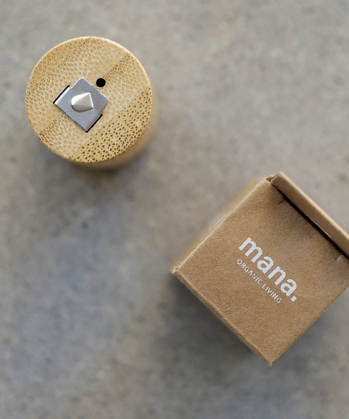 mana.の商品パッケージはすべて再利用、リサイクルあるいはコンポスト(自然分解)が可能な素材を使用しております。生産から破棄まで環境に負担のかかるかプラスチックは一切使用していません。パッケージ使用後は各地域のゴミ分別方法に従い、資源ごみとしてリサイクルして下さい。