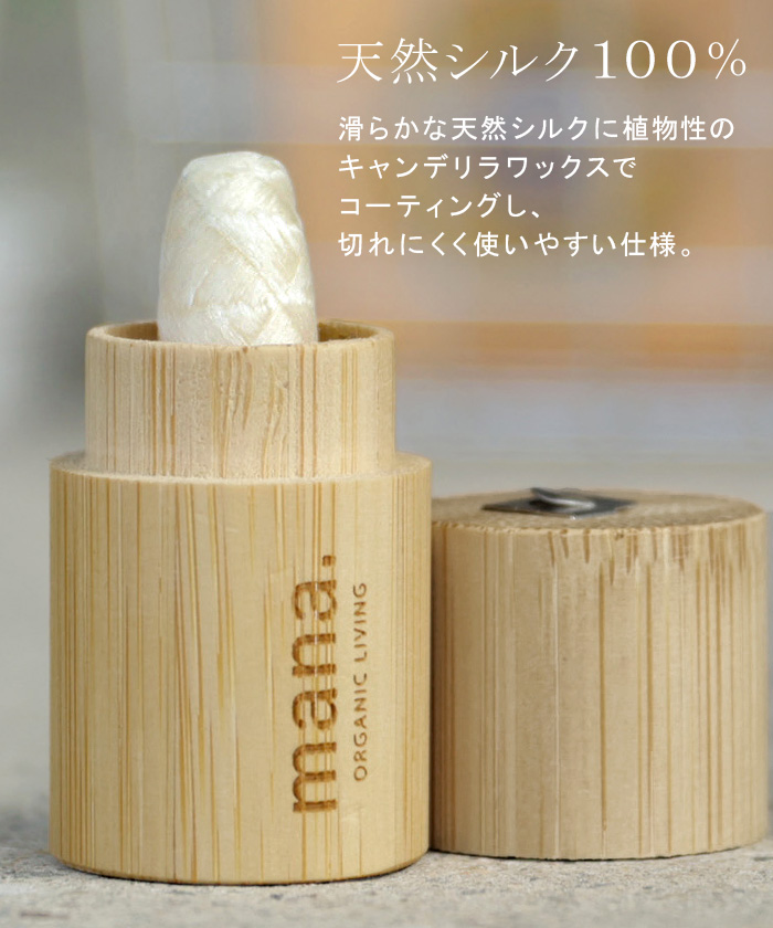 最上級の天然シルクを100%使用。自然由来なだけでなく、丈夫で切れにくいため使いやすさも◎滑りをよくするために植物性のキャンデリラワックスをコーティングしています。