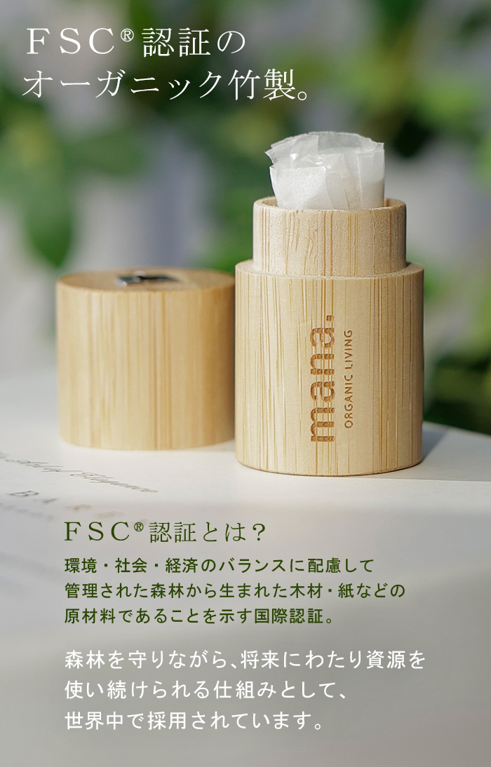 ケースはFSC認証取得のオーガニック竹を採用し、軽くてコンパクトなので持ち運びにも便利。使い終わったら、簡単に開けて取り替えることができます。