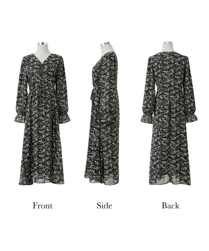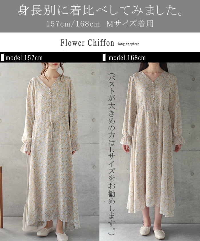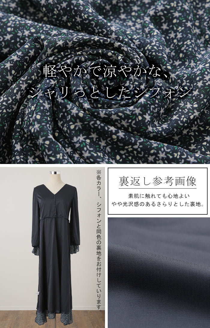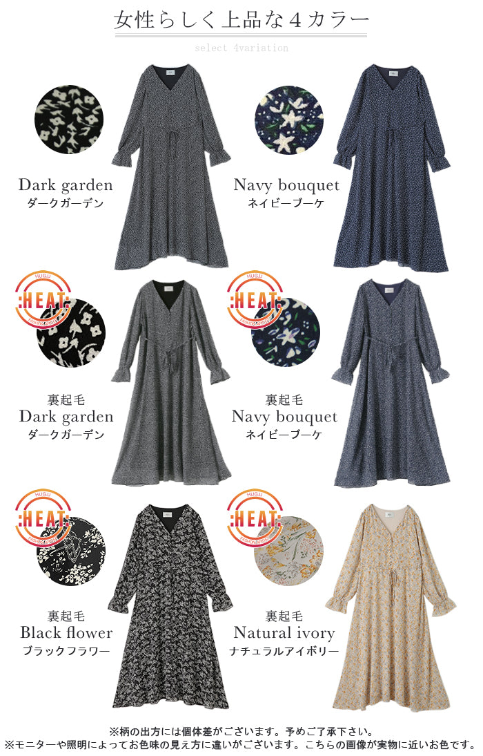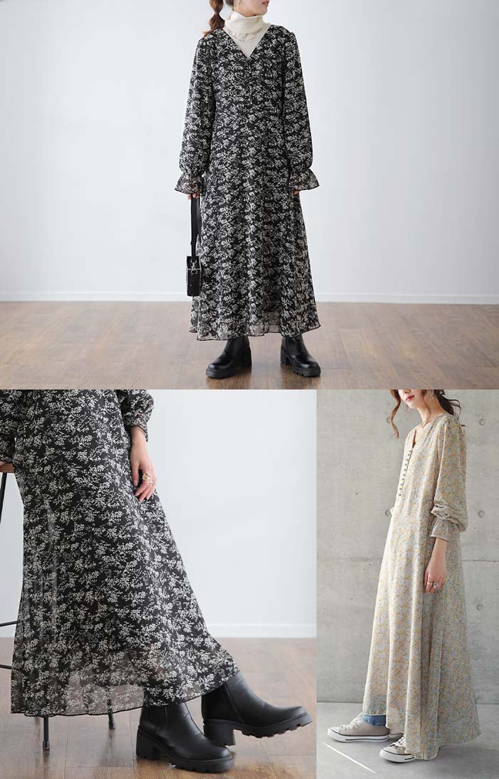 「大人の七難隠す」 花柄ワンピース 。■一部3月中旬入荷 ワンピース ワンピ 裏起毛 シフォンワンピース ロングワンピース レディース ロングワンピ 長袖 小花柄 きれいめ フレア 体型カバー シフォン 大きいサイズ 透け Aライン 春 夏 黒 ホワイト マキシワンピース HUG.U
