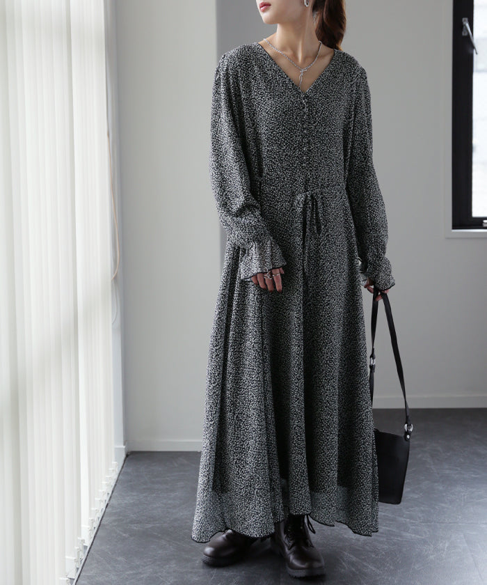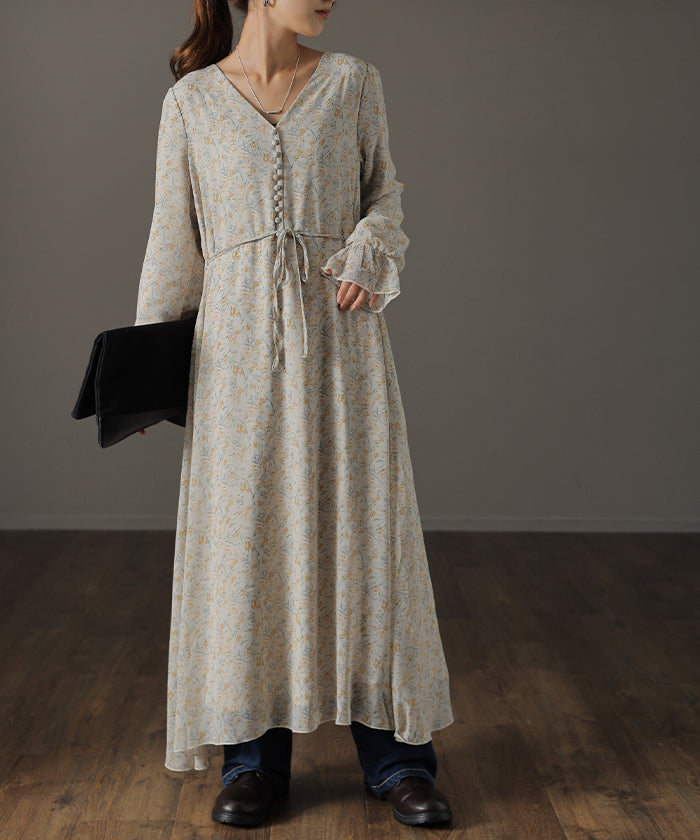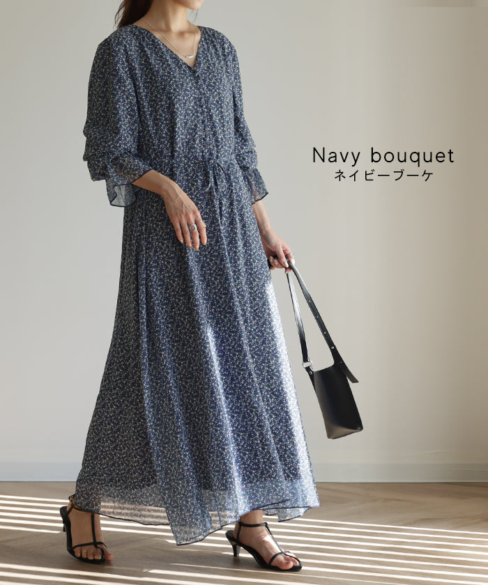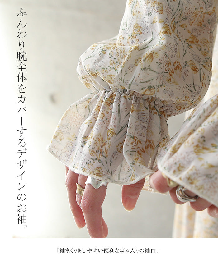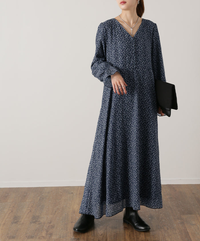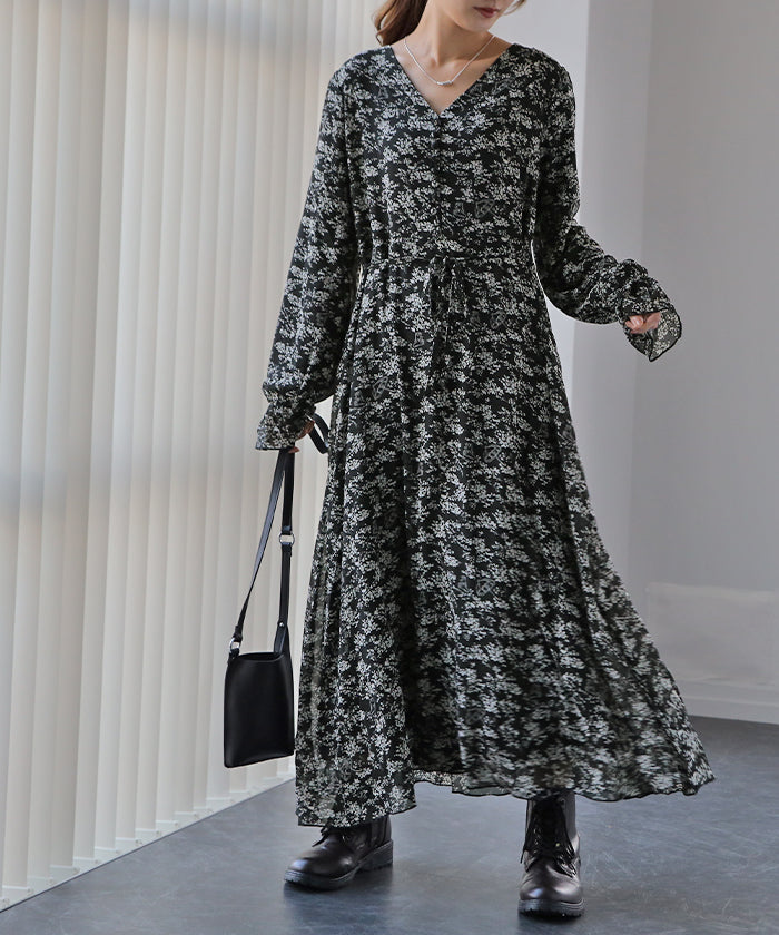 「大人の七難隠す」 花柄ワンピース 。■一部3月中旬入荷 ワンピース ワンピ 裏起毛 シフォンワンピース ロングワンピース レディース ロングワンピ 長袖 小花柄 きれいめ フレア 体型カバー シフォン 大きいサイズ 透け Aライン 春 夏 黒 ホワイト マキシワンピース HUG.U