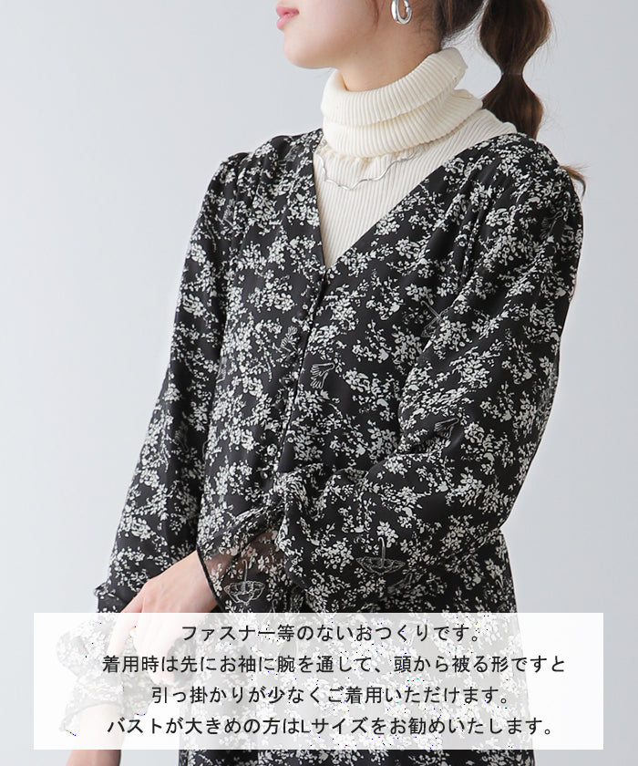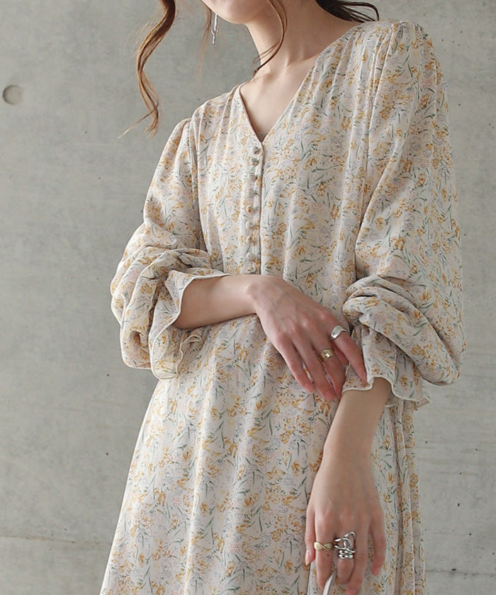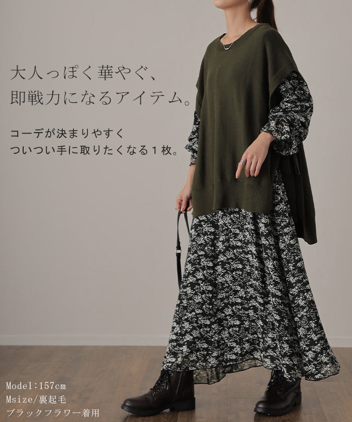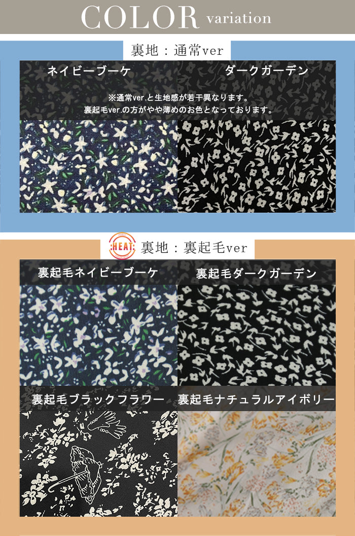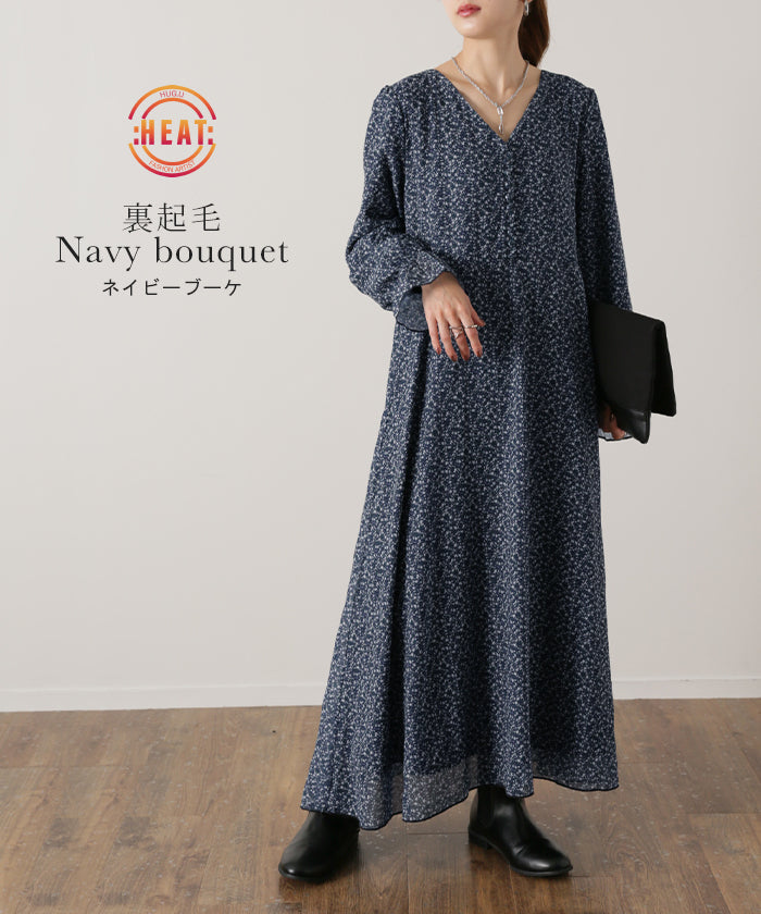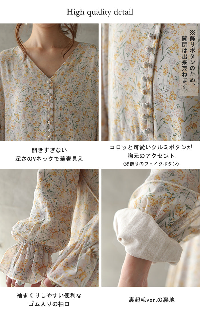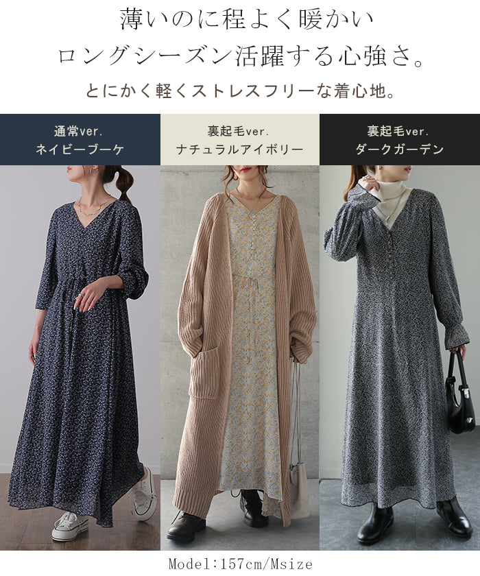 フェミニンなムードが引き立つ花柄シフォンワンピース。裏地は裏起毛で暖かいのにシアーなシフォン生地がエアリーで華やかな印象。一枚でもコーディネートが完成し、小物の合わせ次第でパーティーやお出掛けシーンにも活躍します。