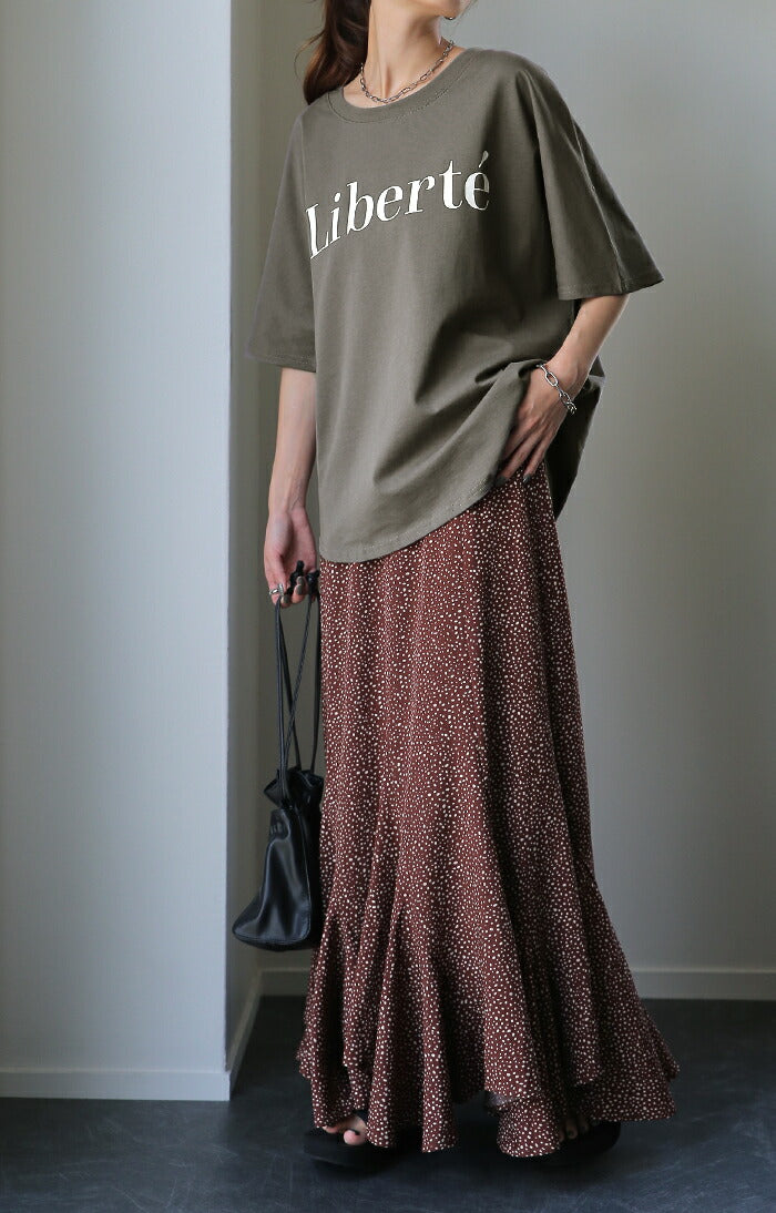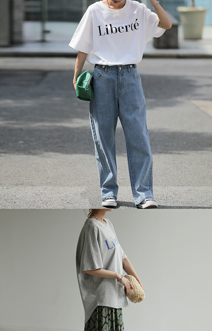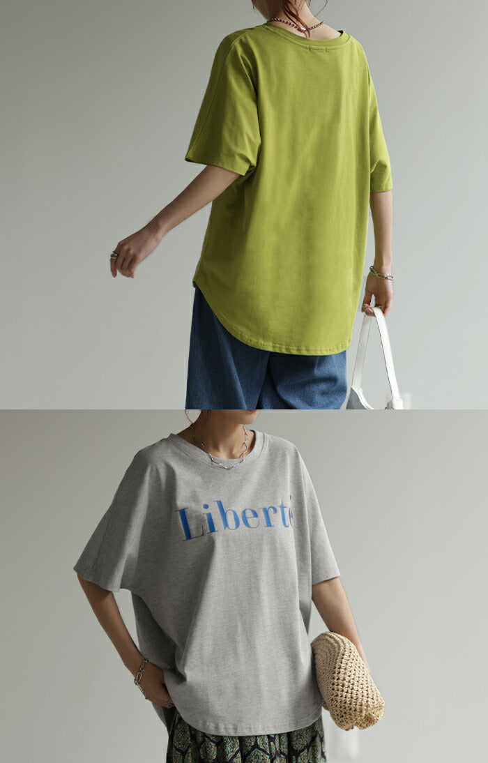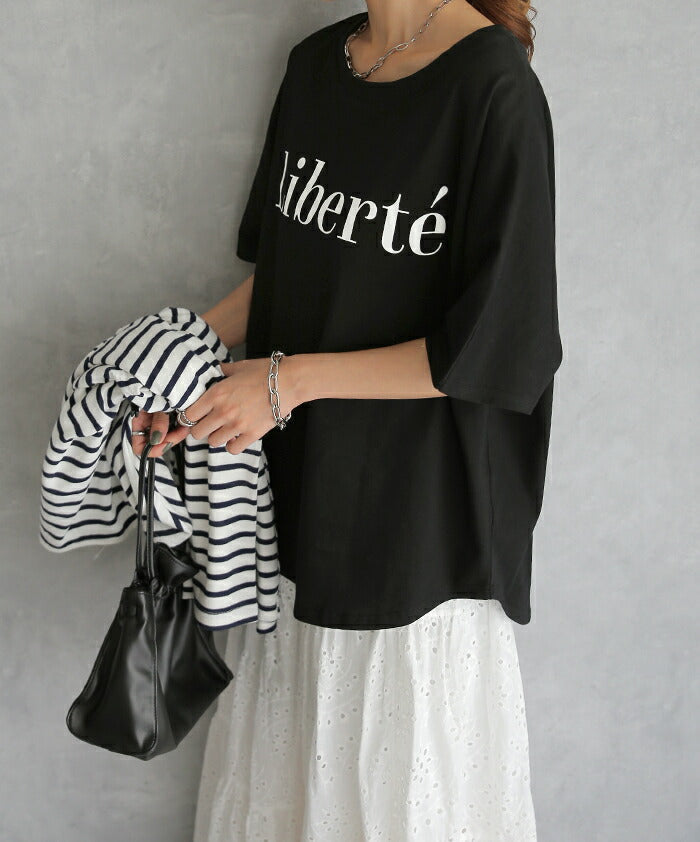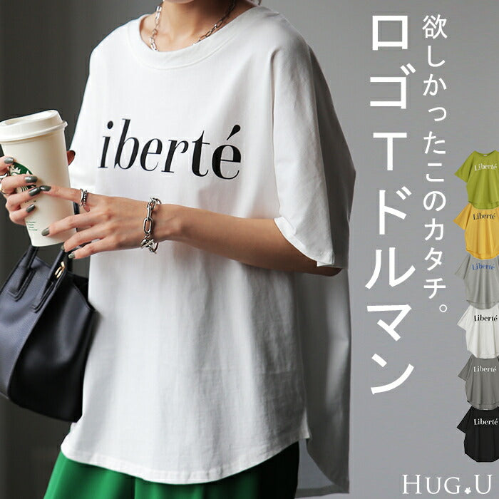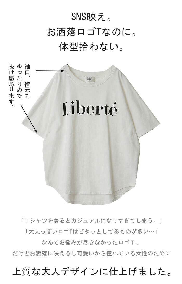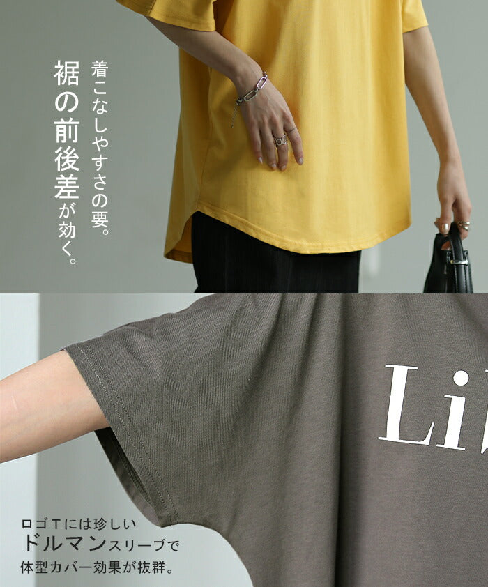 大人でも着やすいシンプルなロゴTシャツが誕生しました。ドルマンスリーブで気になる二の腕もしっかりカバー!どんなボトムとも合わせやすい最強アイテムです。