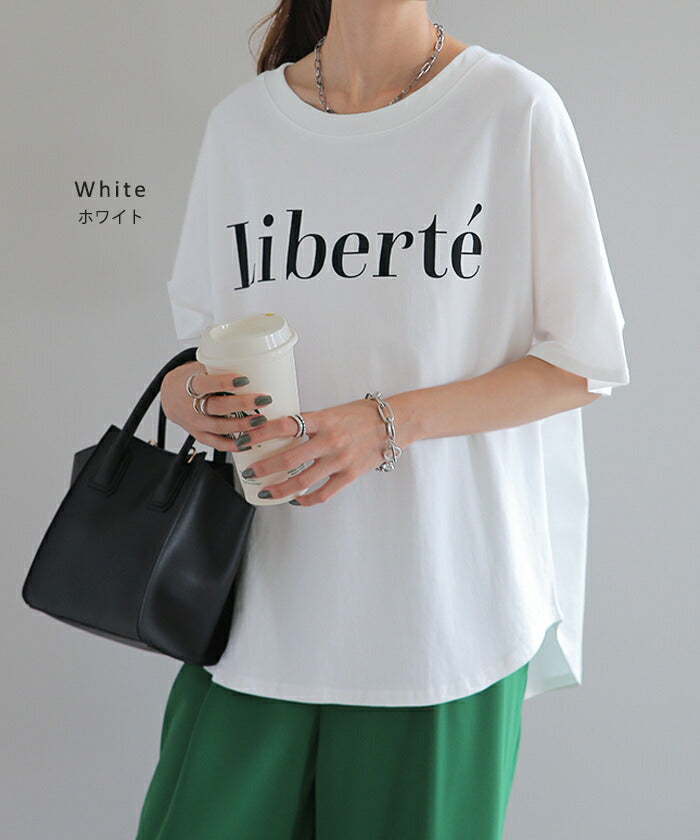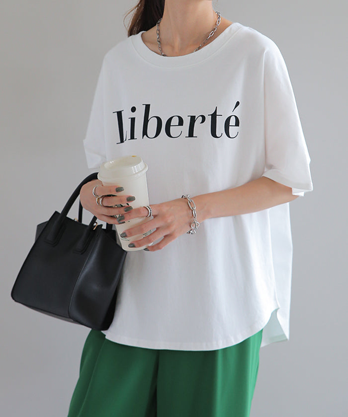 デイリー使い抜群なロゴプリントシャツです。 ドルマンスリーブになっているので腕を細く見せてくれます。 様々なスタイリングにも馴染み幅広く活躍してくれるアイテムです。
