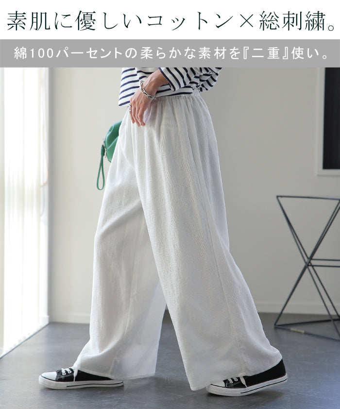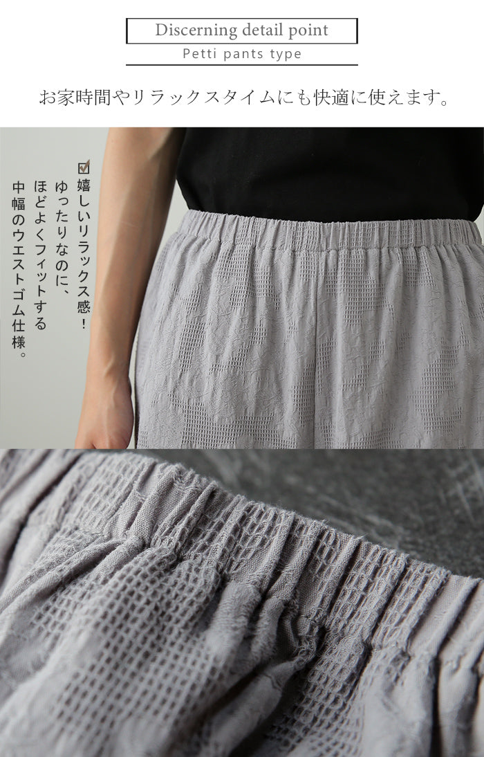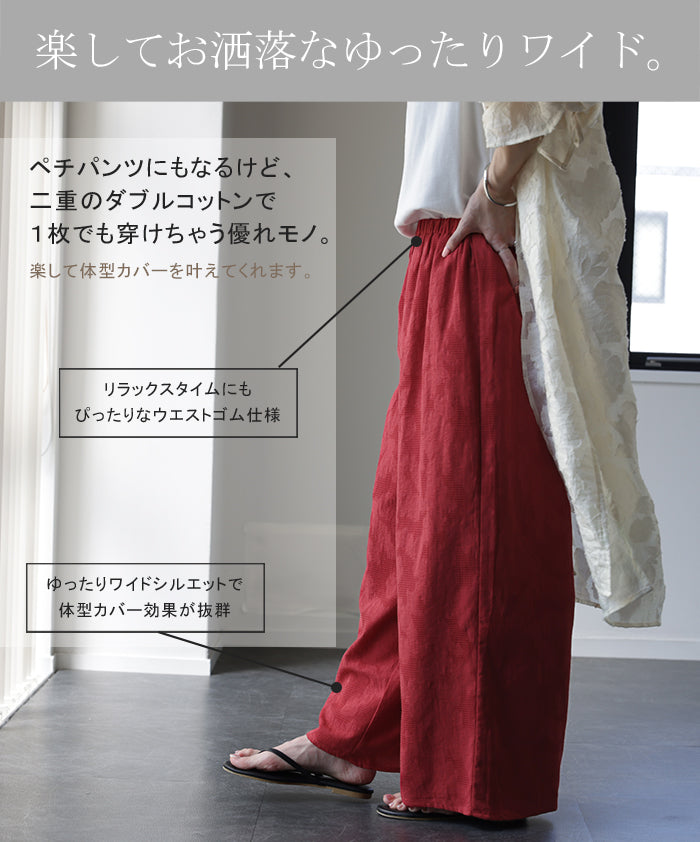 大人のレイヤードが華やぐ重ね着用ペチパンツ。 リラックス感あるワイドシルエットなので体型をカバーし自然に着痩せ。 ダブルコットンのさらっとした素材感で快適な履き心地です。
